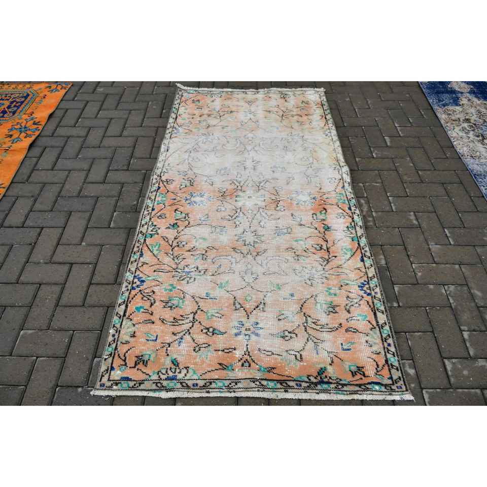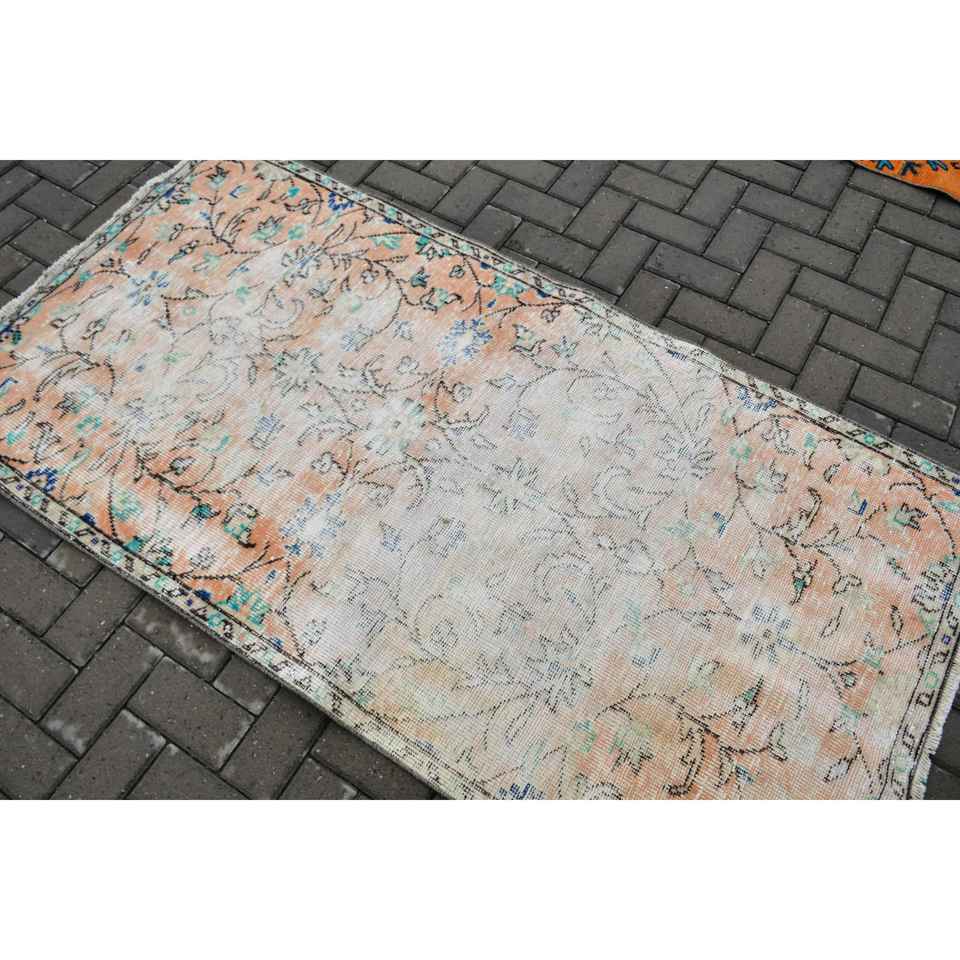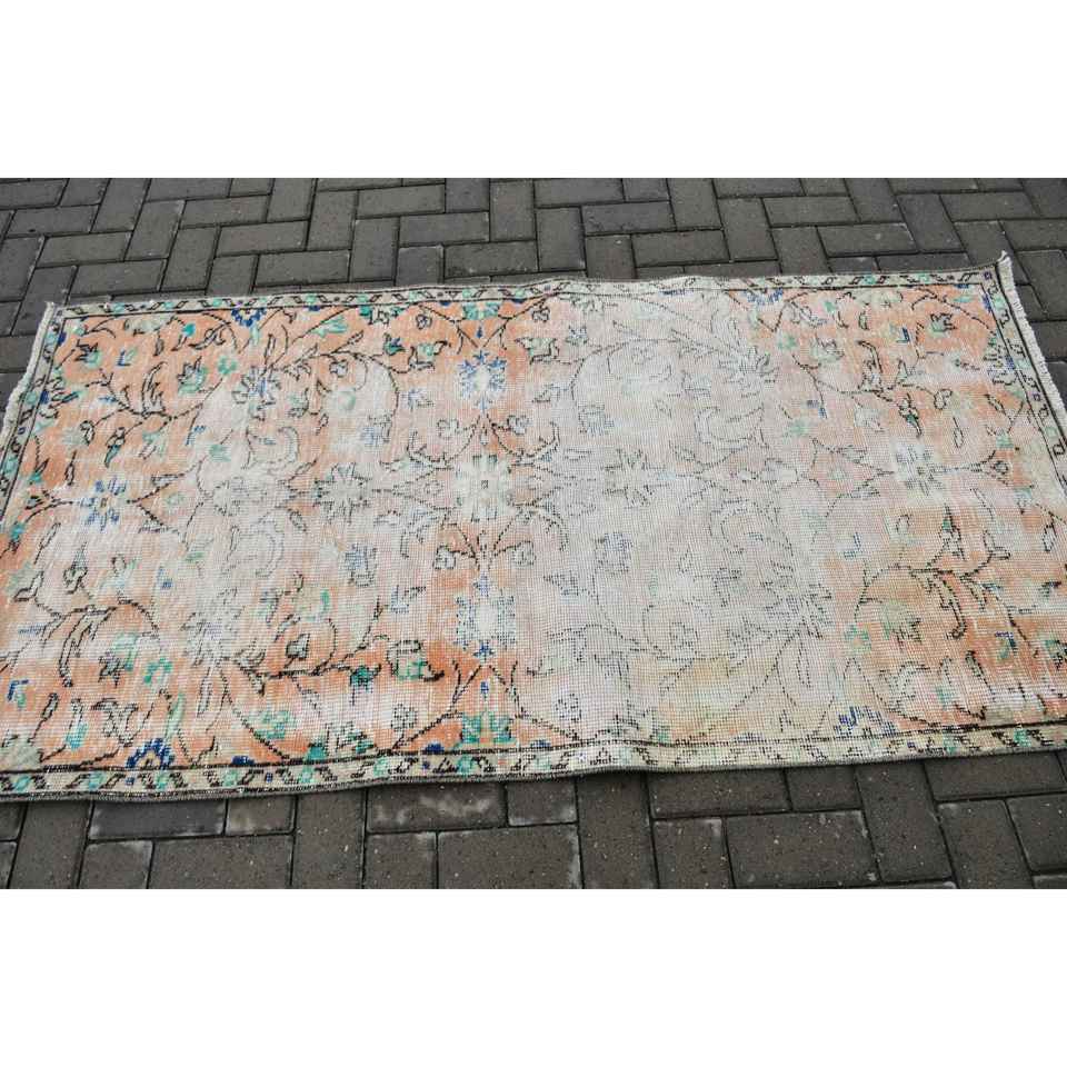 Alfombra Vintage de 3.4x6.5 pies, Alfombra Turca de Lana con Rayas Azules