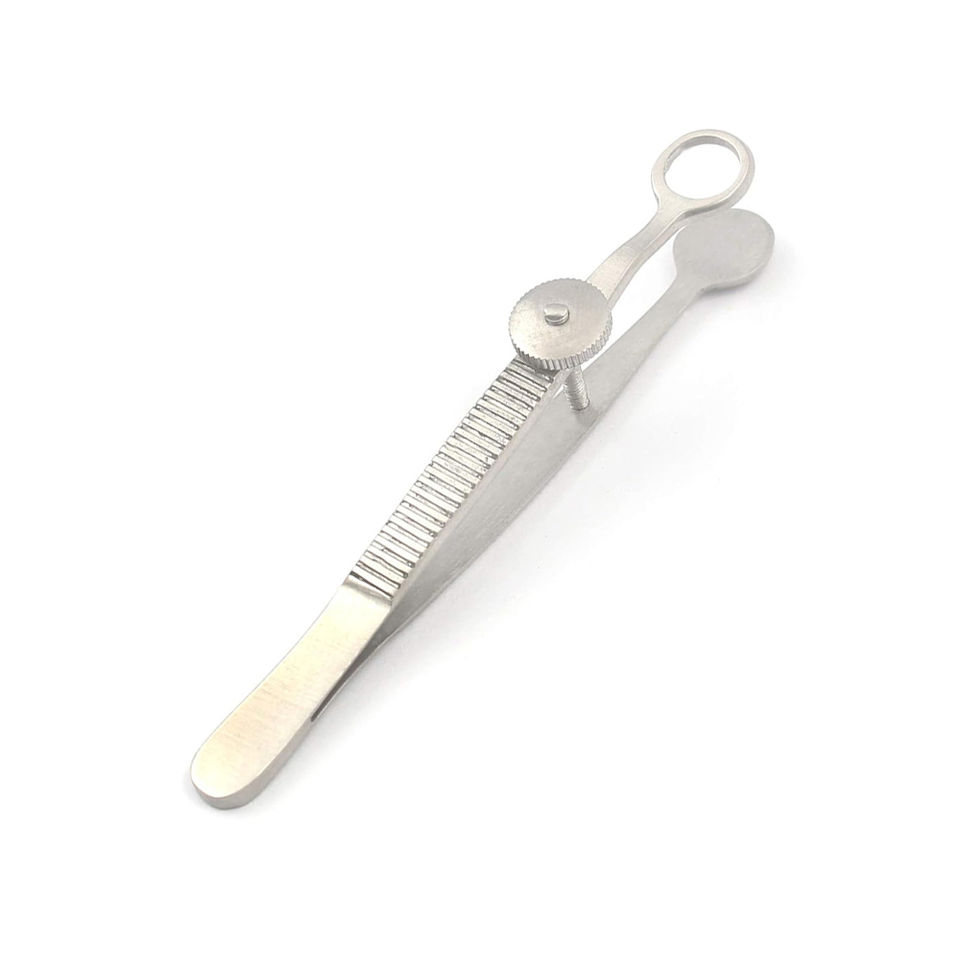 Pinzas de Chalazion Manuales Reutilizables de Acero Inoxidable de 3.5 Pulgadas y 8 mm, Instrumento Quirúrgico Oftálmico con Placa Redonda