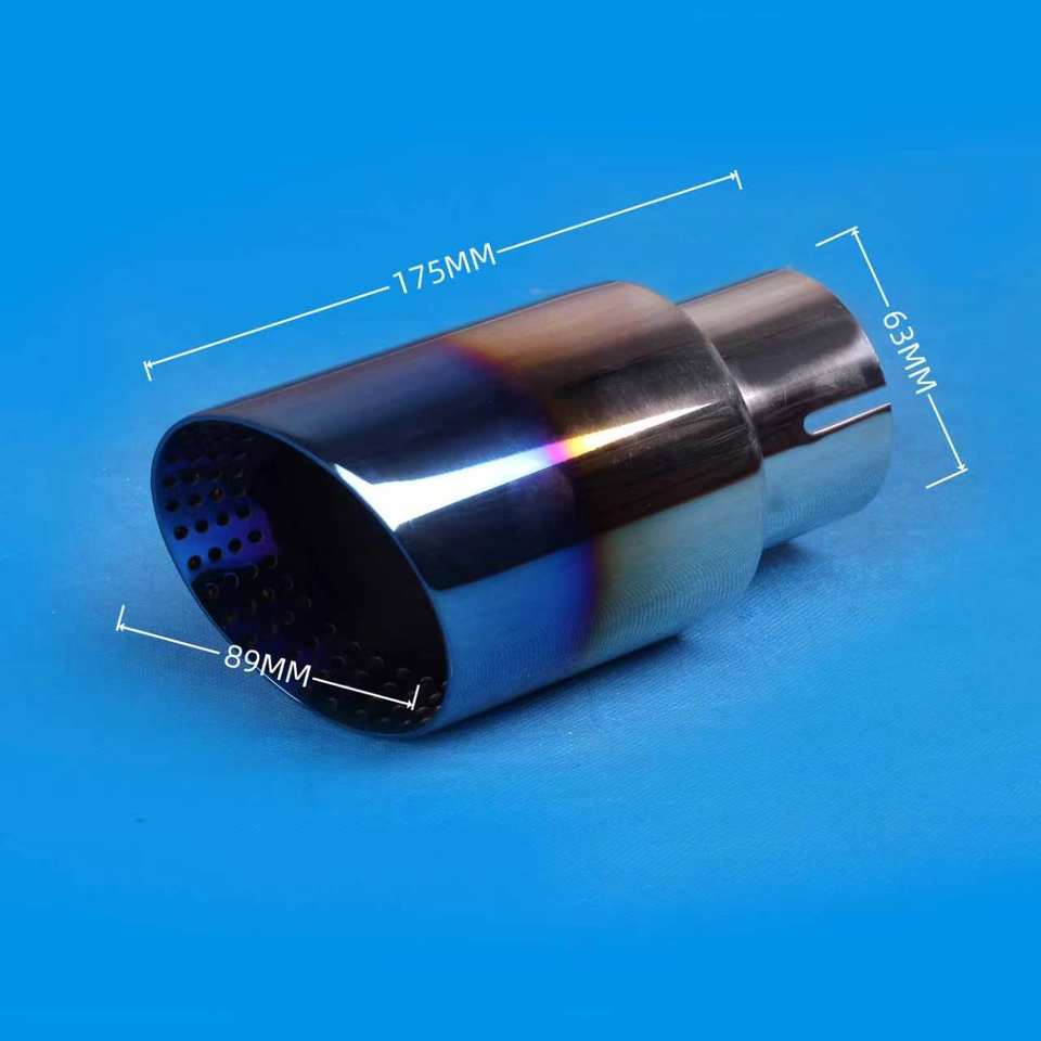 Punta de escape universal de acero inoxidable de 3.5 pulgadas, azul quemado, corte inclinado, pulido espejo, para silenciador y tubo de escape, pieza exterior de coche