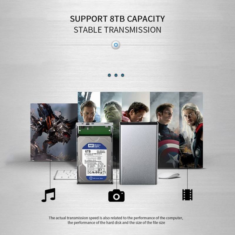 Caja de Aluminio para Disco Duro de 3.5 Pulgadas, SATA III, con Enchufe de Alimentación para EE. UU., Reino Unido, UE y Australia, USB 3.0, para Discos Duros y SSD de 2.5/3.5 Pulgadas