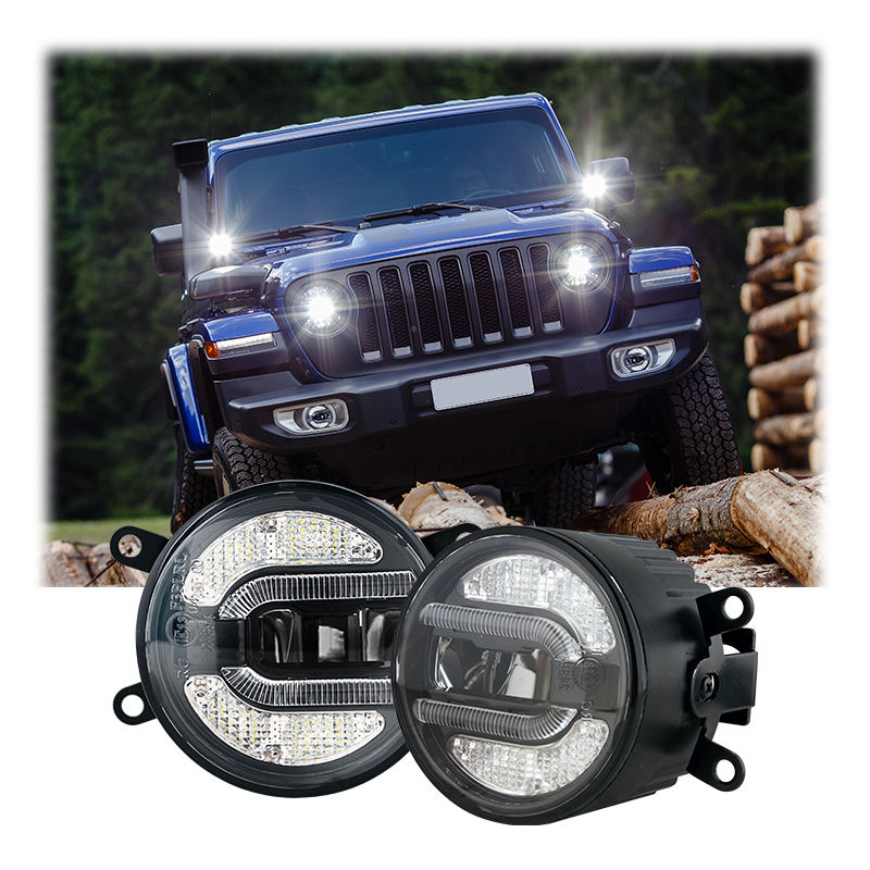 Luz Antiniebla LED Redonda de 3.5 Pulgadas para Todoterreno, Azul/Blanco, Barra de Decoración Integrada, Luces Antiniebla LED de 20W