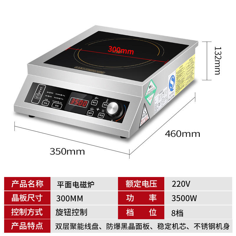 Cocina de Inducción Comercial de 3.5 KW de Alta Potencia, Placa de Cocción Plana de Acero Inoxidable, Pantalla Táctil Digital, Ahorro de Energía para Cocinar con Salpicaduras