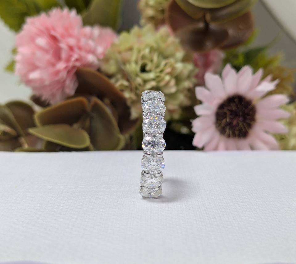 Anillo de Boda Clásico de Media Eternidad con Diamante Cultivado en Laboratorio de Corte Ovalado de 3.50 Ct para Mujer, Banda de Oro Blanco/Amarillo de 10K/14K, Regalo de San Valentín
