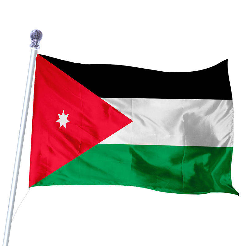Bandera de Jordania Personalizada para Exteriores de 3x5 pies, Roja, Blanca, Negra y Verde, 75D, Poliéster Impermeable, Impresión Digital para Promoción