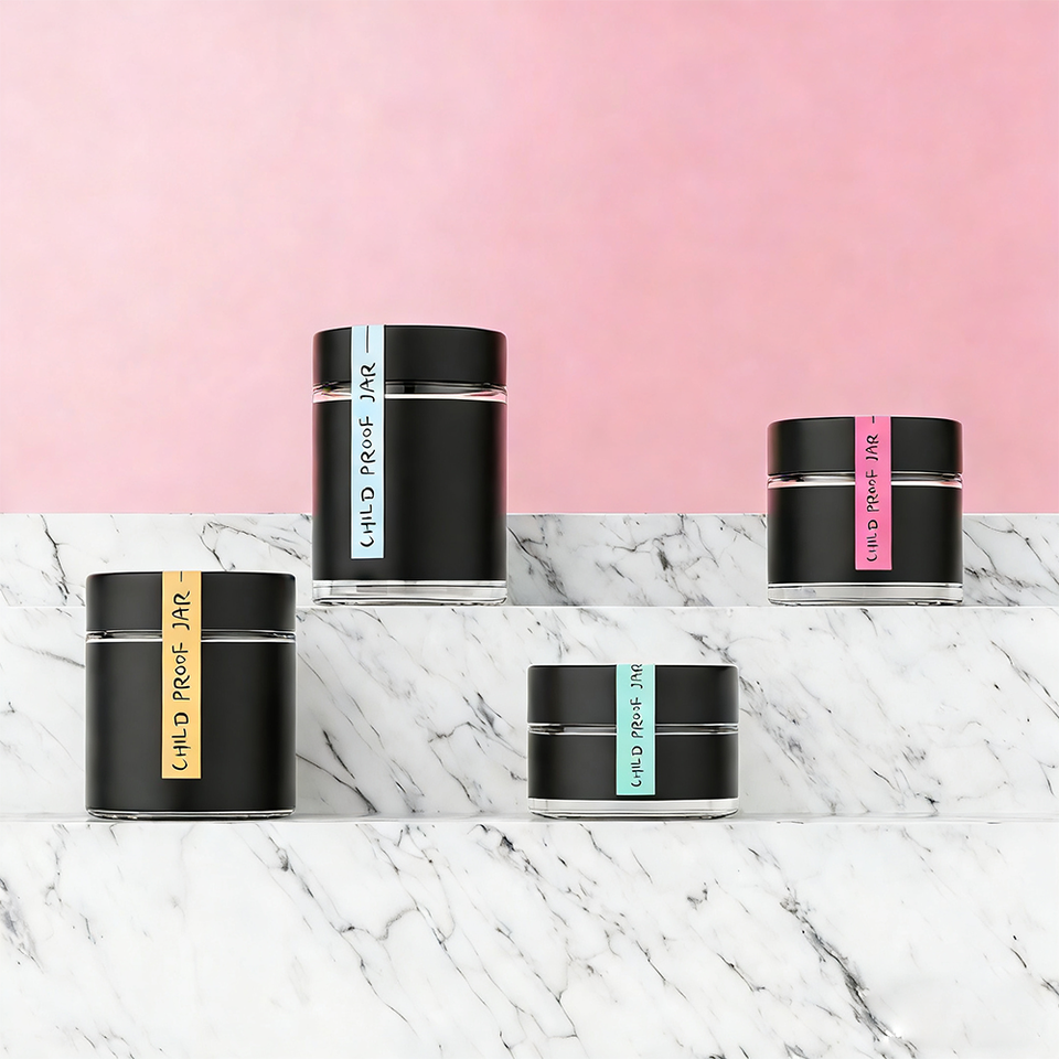 Frascos de Vidrio Redondos de 120 ml (4 oz) con Tapas Negras a Prueba de Niños, Etiquetas Personalizadas, Precio Económico, Bajo MOQ, para Venta al por Menor
