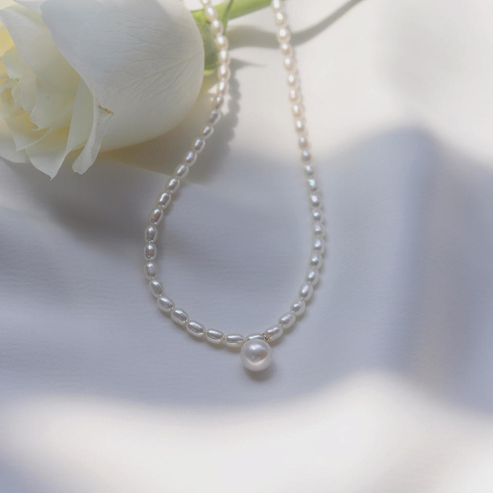 Collar de Perlas de Agua Dulce de 3-5 mm con Colgante Único, Cadena Versátil para Clavícula, Diseño de Nicho, Sensación de Alta Gama