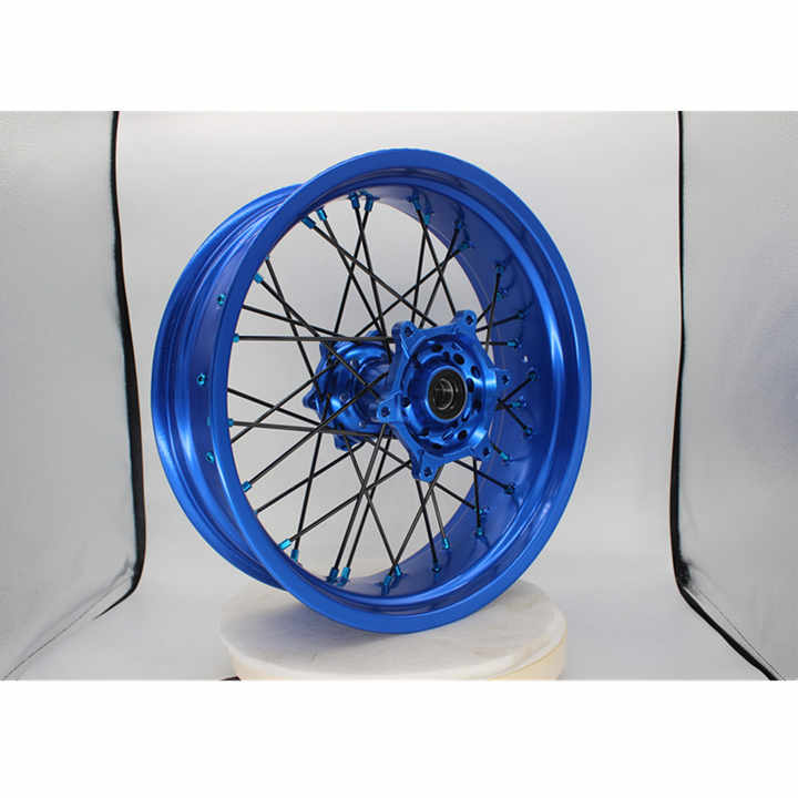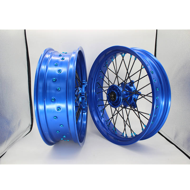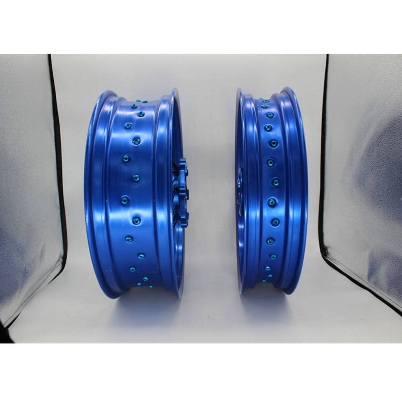 3,5x17 Delantero 5,0x17 Trasero Supermotard Llanta de rueda Aleación de aluminio Llanta azul Ruedas de cubo azul para motocicleta