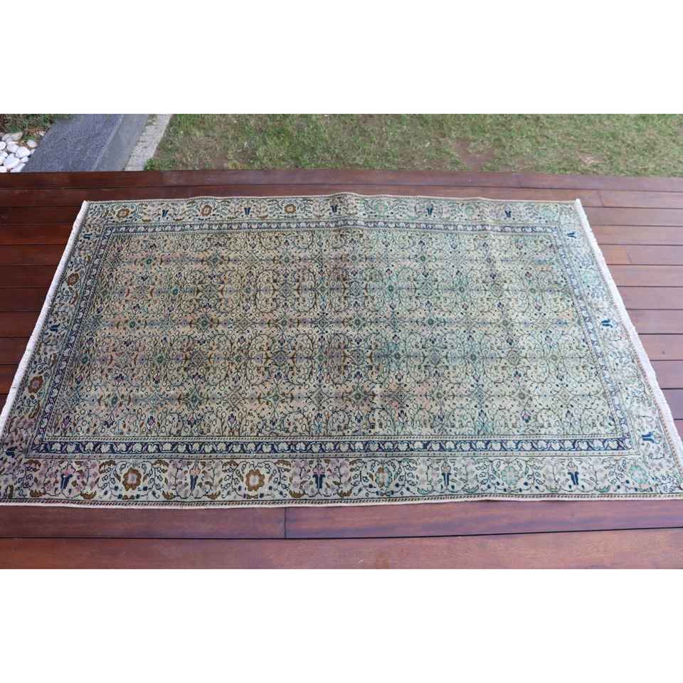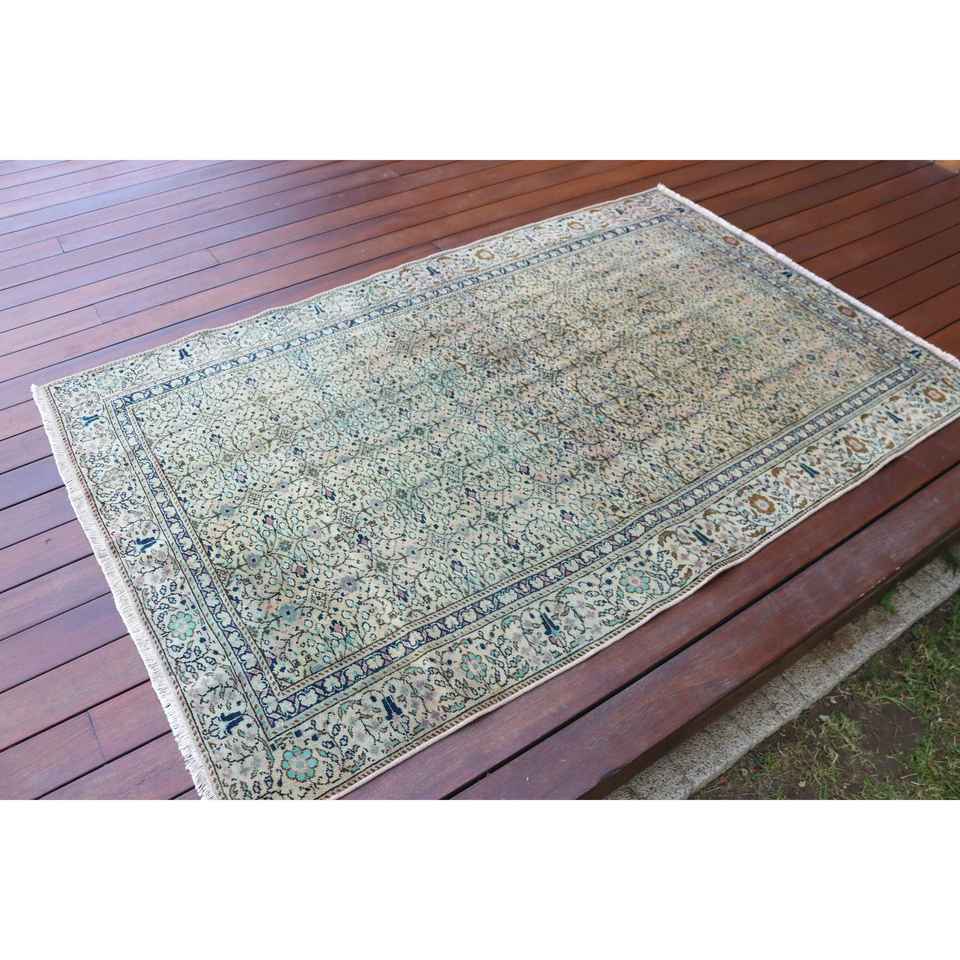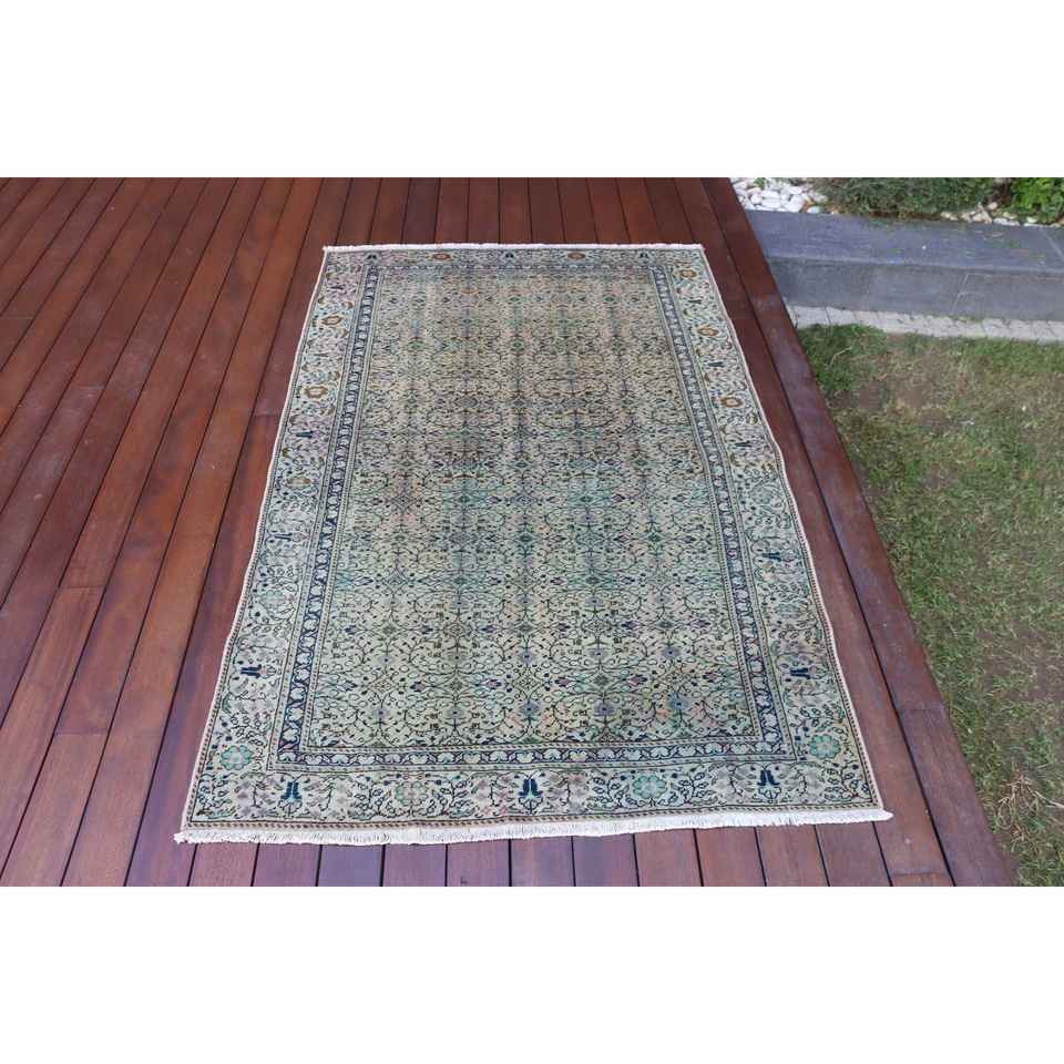 Alfombra Vintage de 3.5x5.5 pies, Alfombra Turca con Detalles, Alfombra Ikat Azul Verde