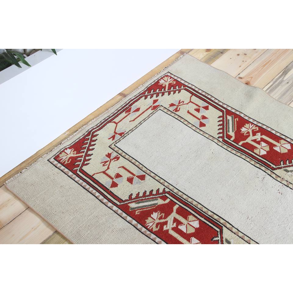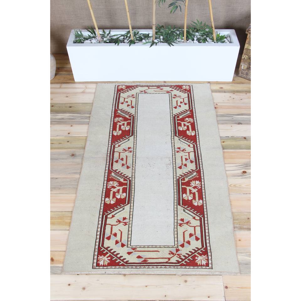 Alfombra Turca Decorativa de 3.5x6 pies, Alfombra Vintage Geométrica Beige