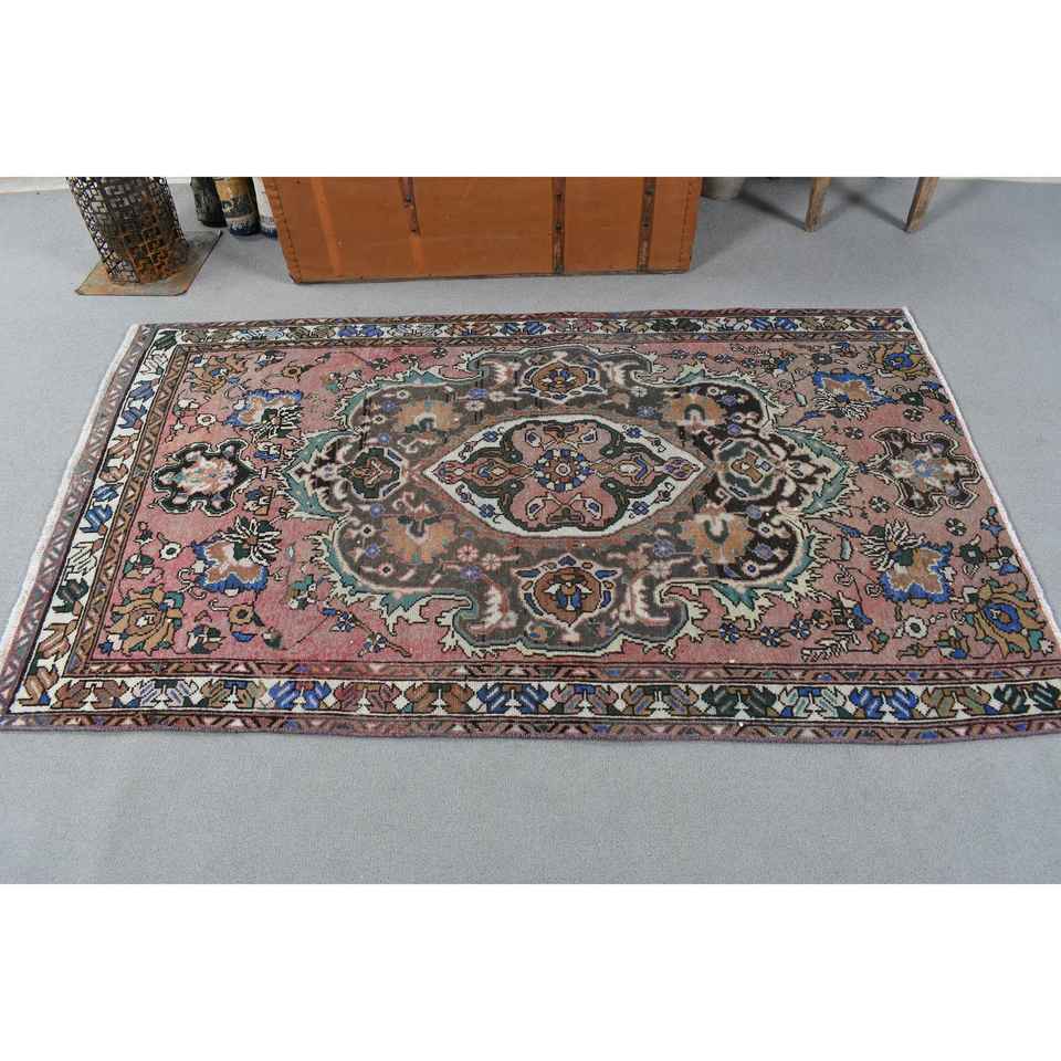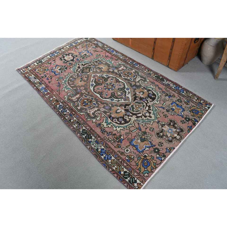 Alfombra Turca de 3.5x6 pies, Alfombra Decorativa Vintage, Alfombra a Rayas Rojas y Azules