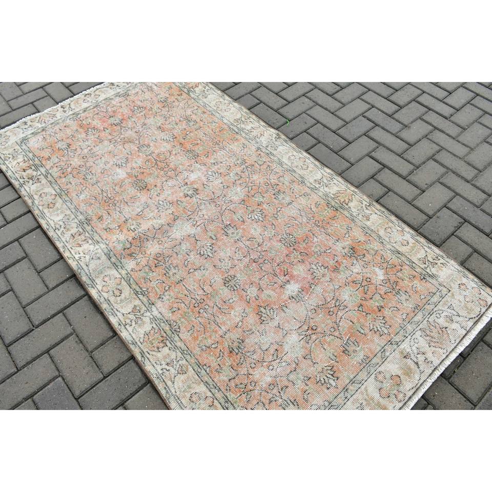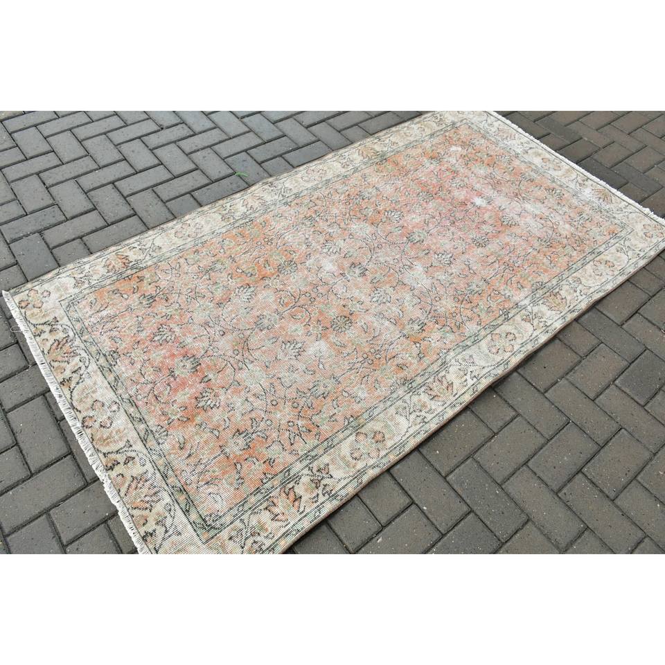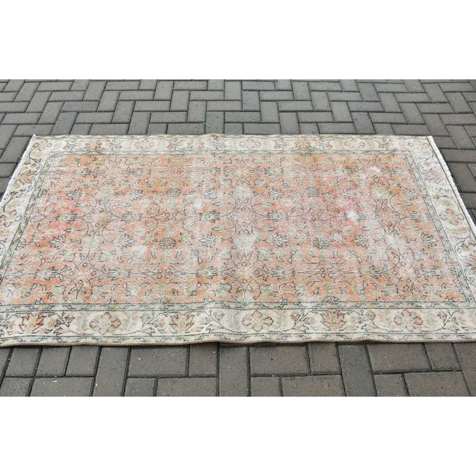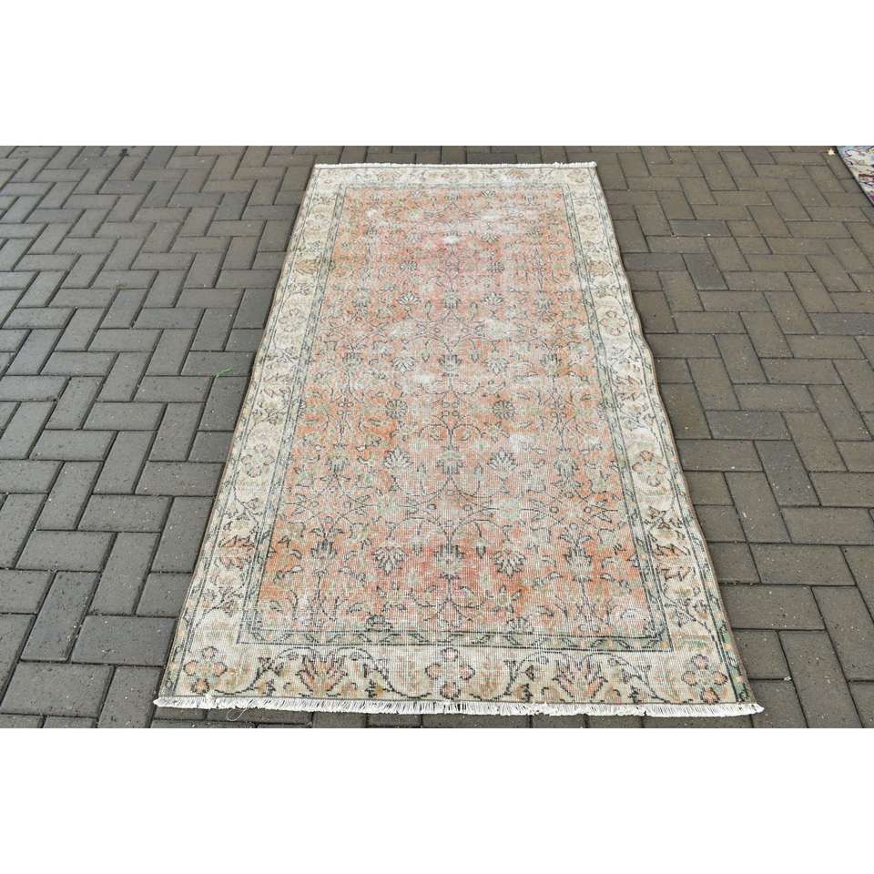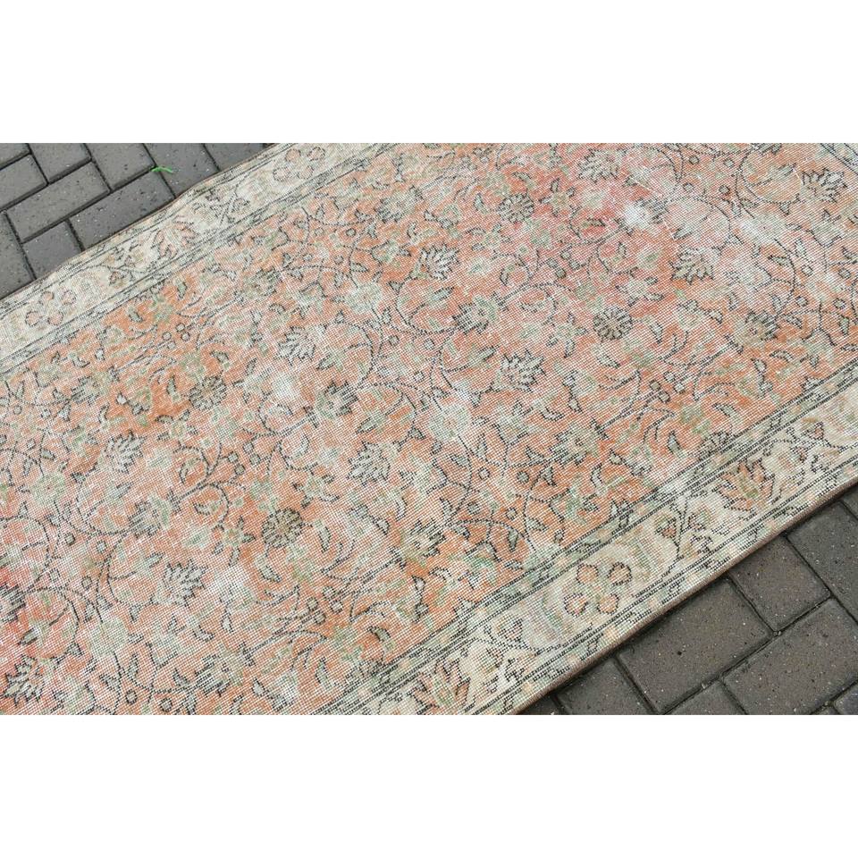 Alfombra Turca de 3.6x6.7 pies, Alfombra Vintage, Alfombra de Lana con Diseño Floral Naranja