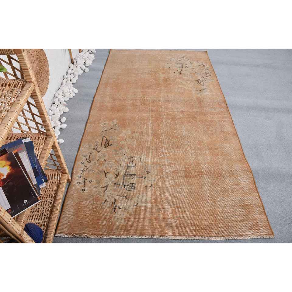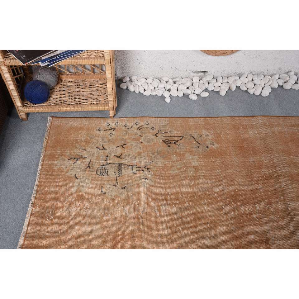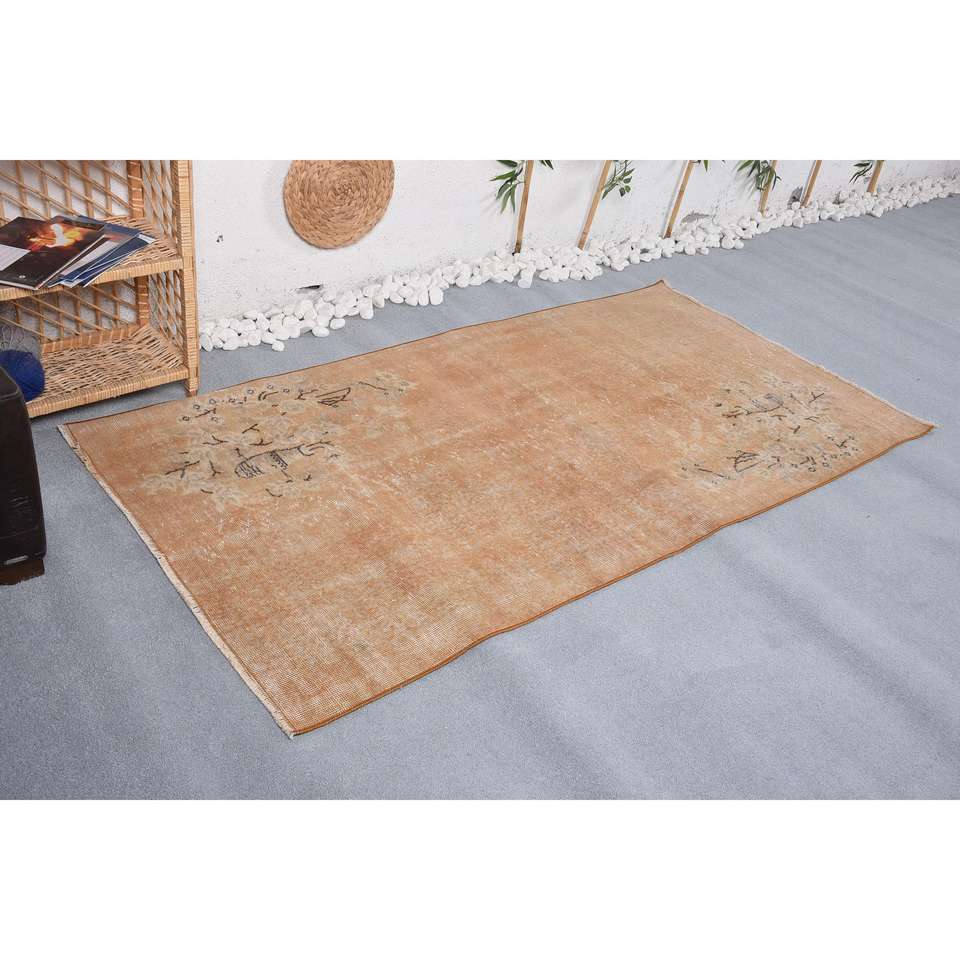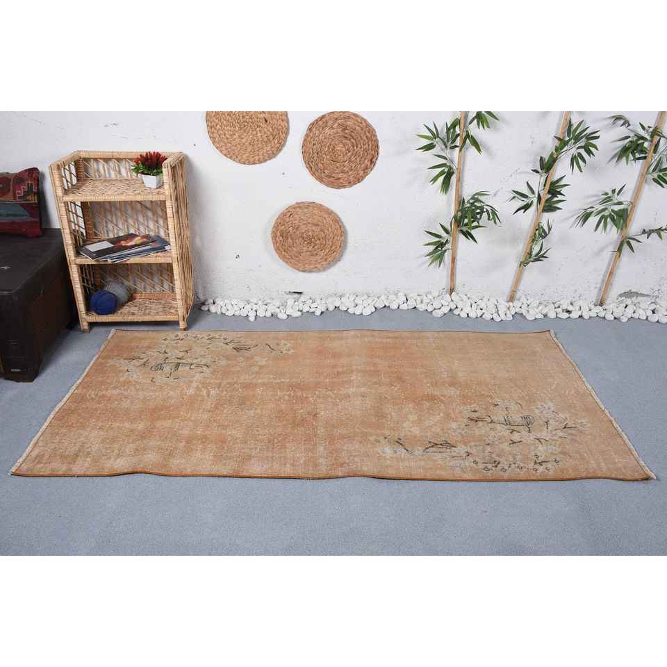 Alfombra Turca de 3.6x7.3 pies, Alfombra Vintage, Alfombra Beige Marrón Estilo Suroeste