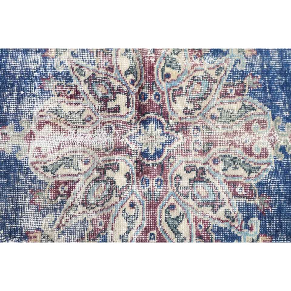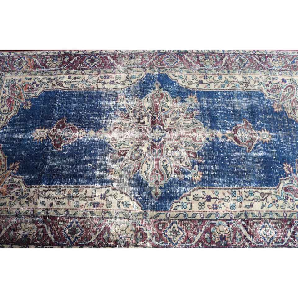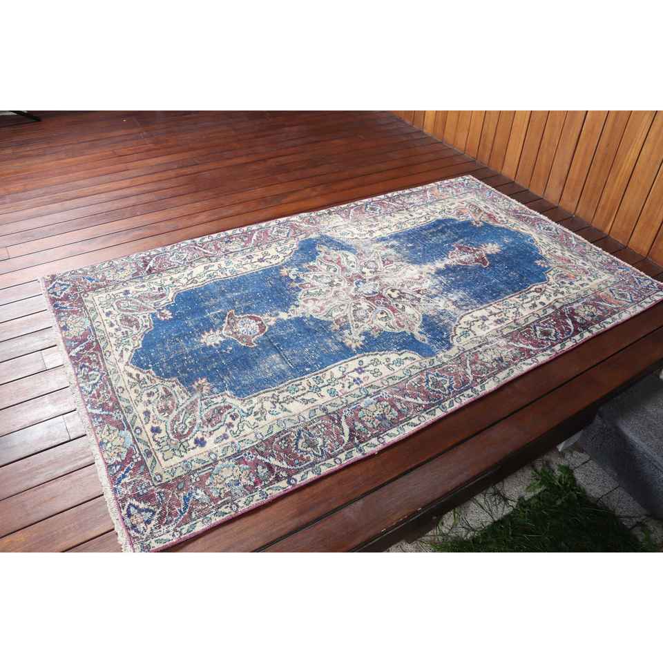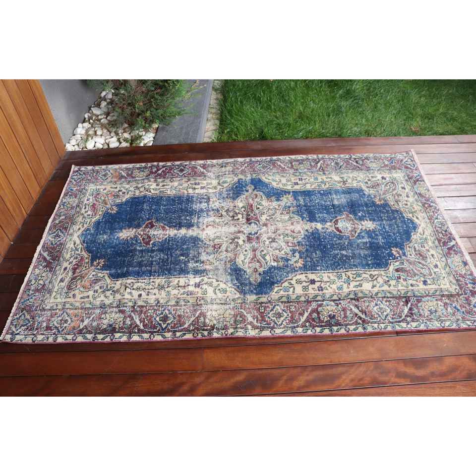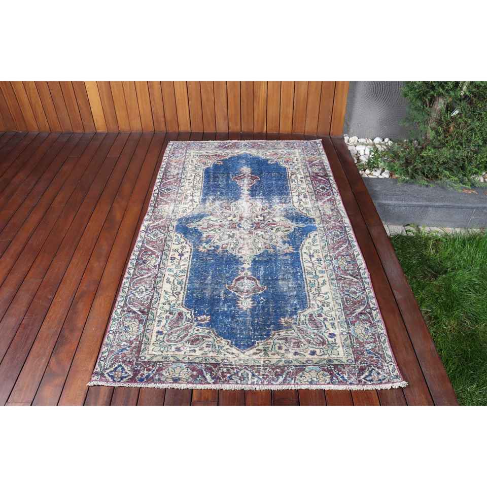 Alfombra Vintage de 3.7x6.2 pies, Alfombra Azul Marroquí de Lana