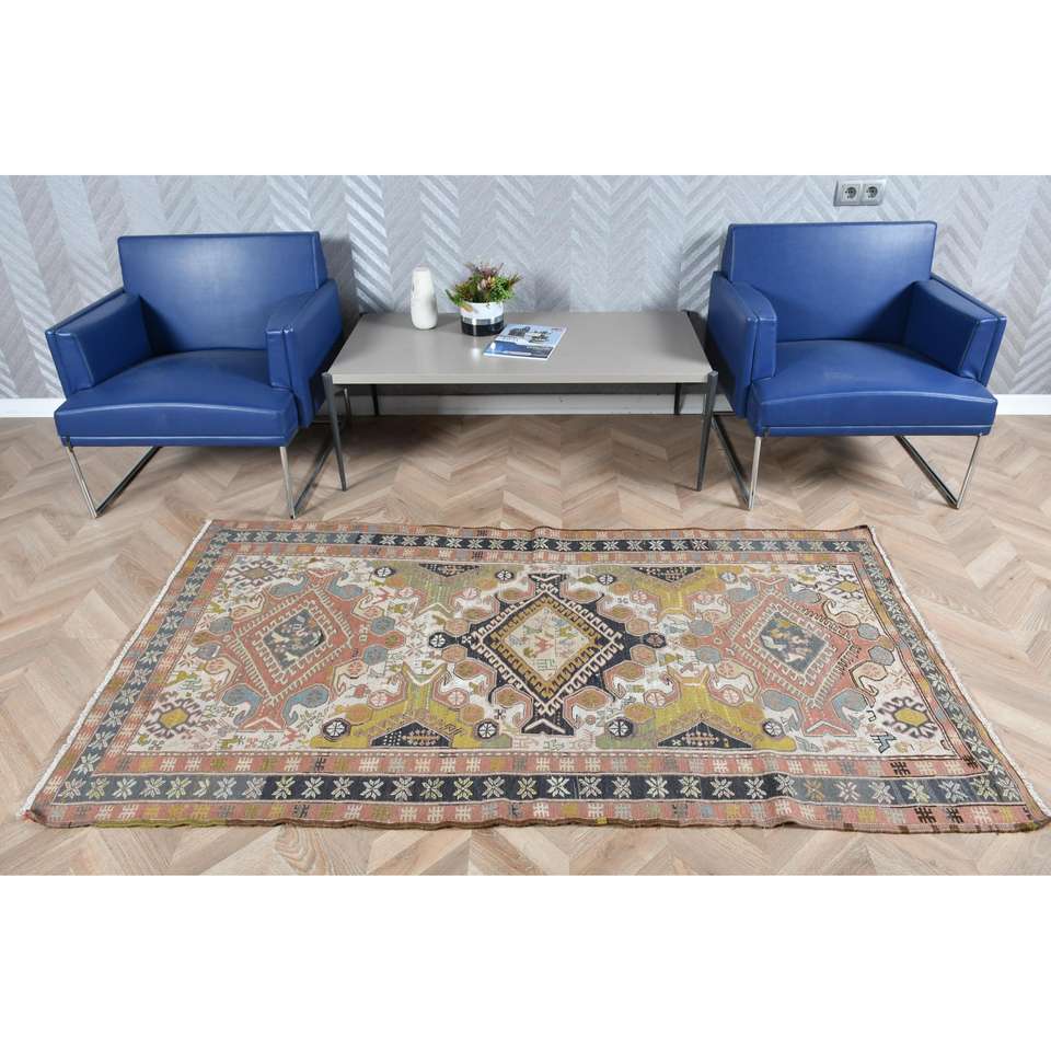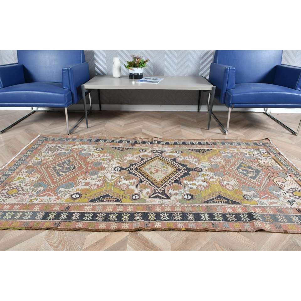 Alfombra de 3.7x6.7 pies, Alfombra Turca Vintage, Alfombra de Lana Kilim Azul