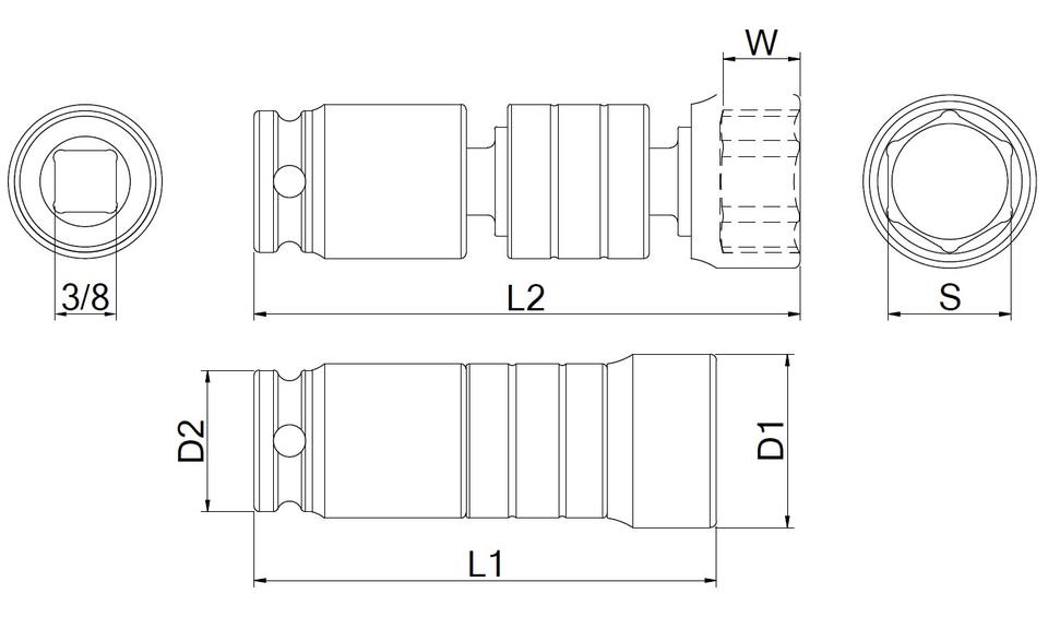 3/8 "Dr. Enchufe universal de impacto de 3 vías