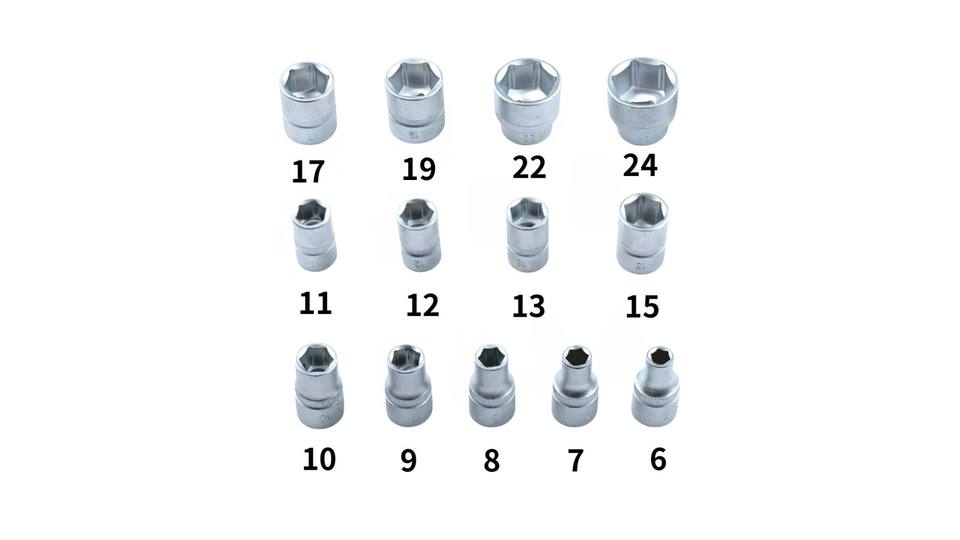 Juego de Llaves de Tubo de 18 Piezas con Encastre Manual de 3/8\", Fabricadas en Acero al Cromo Vanadio con Puntas de 6 Puntas