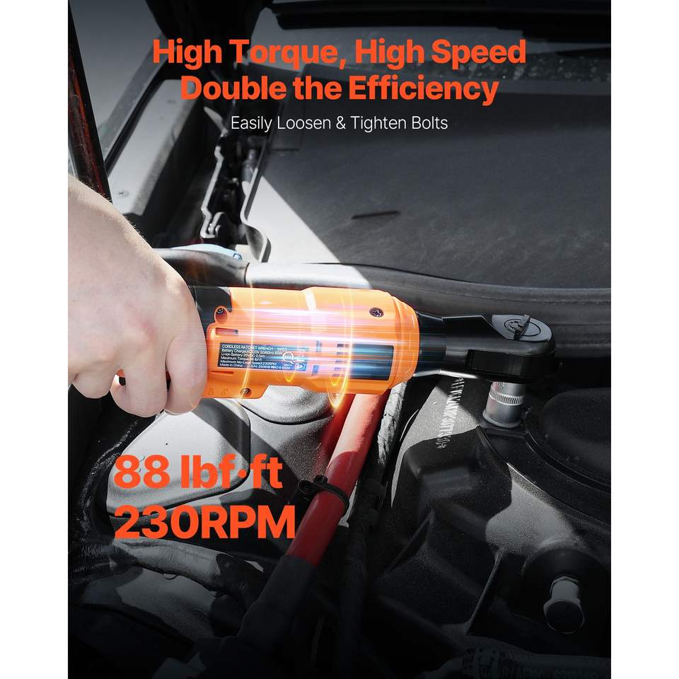 Juego de Llaves de Trinquete Eléctricas Inalámbricas de 3/8 Pulgadas con Batería, 230 RPM y 88 Ft-lbs de Torque