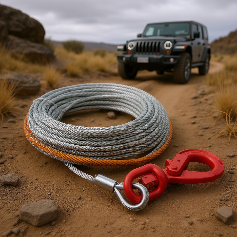 Cable de remolque de acero galvanizado de 3/8 pulgadas x 50 pies con gancho giratorio para SUV todoterreno