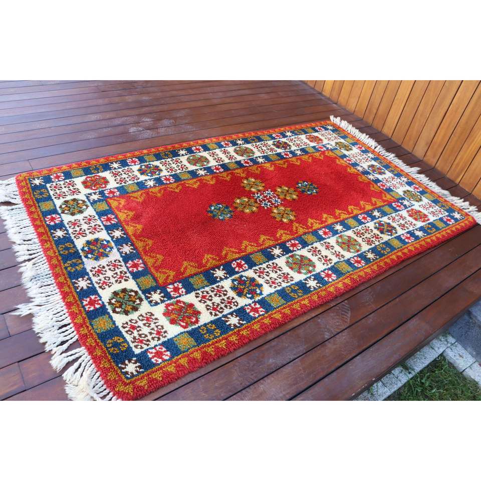 Alfombra Turca de 3.8x6.4 pies, Alfombra Vintage, Alfombra Oriental Roja