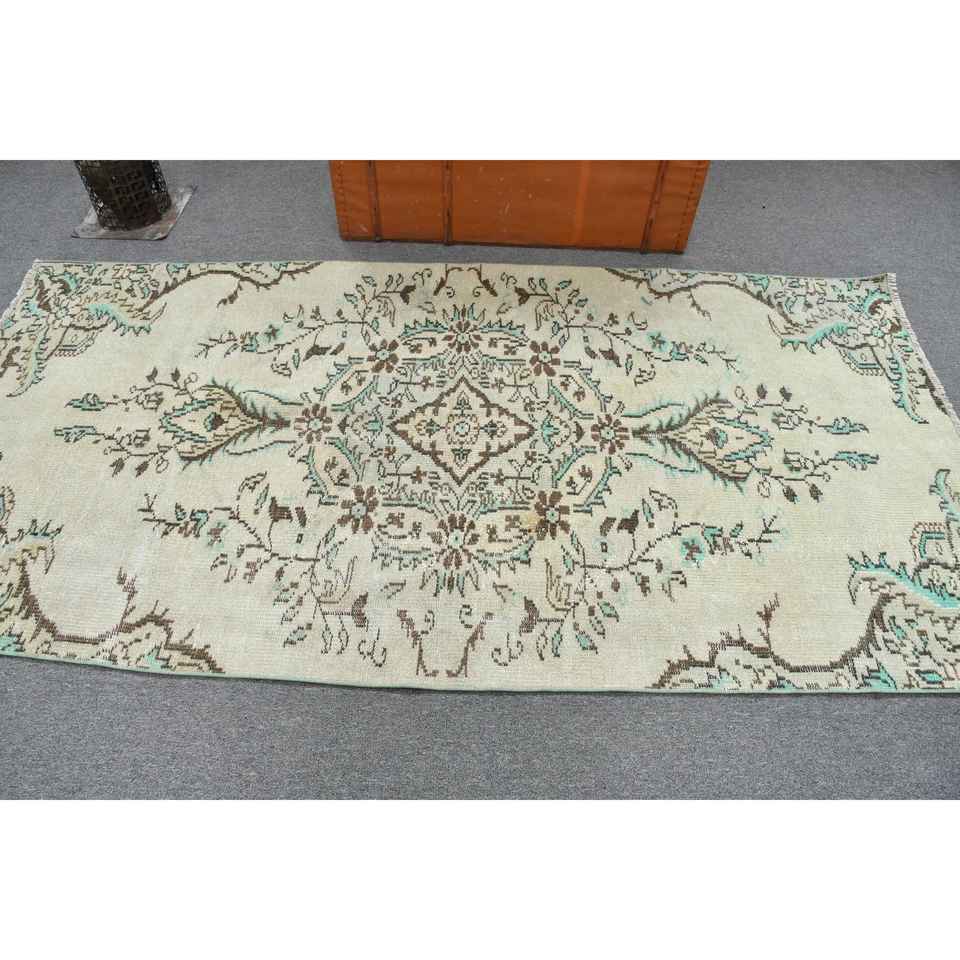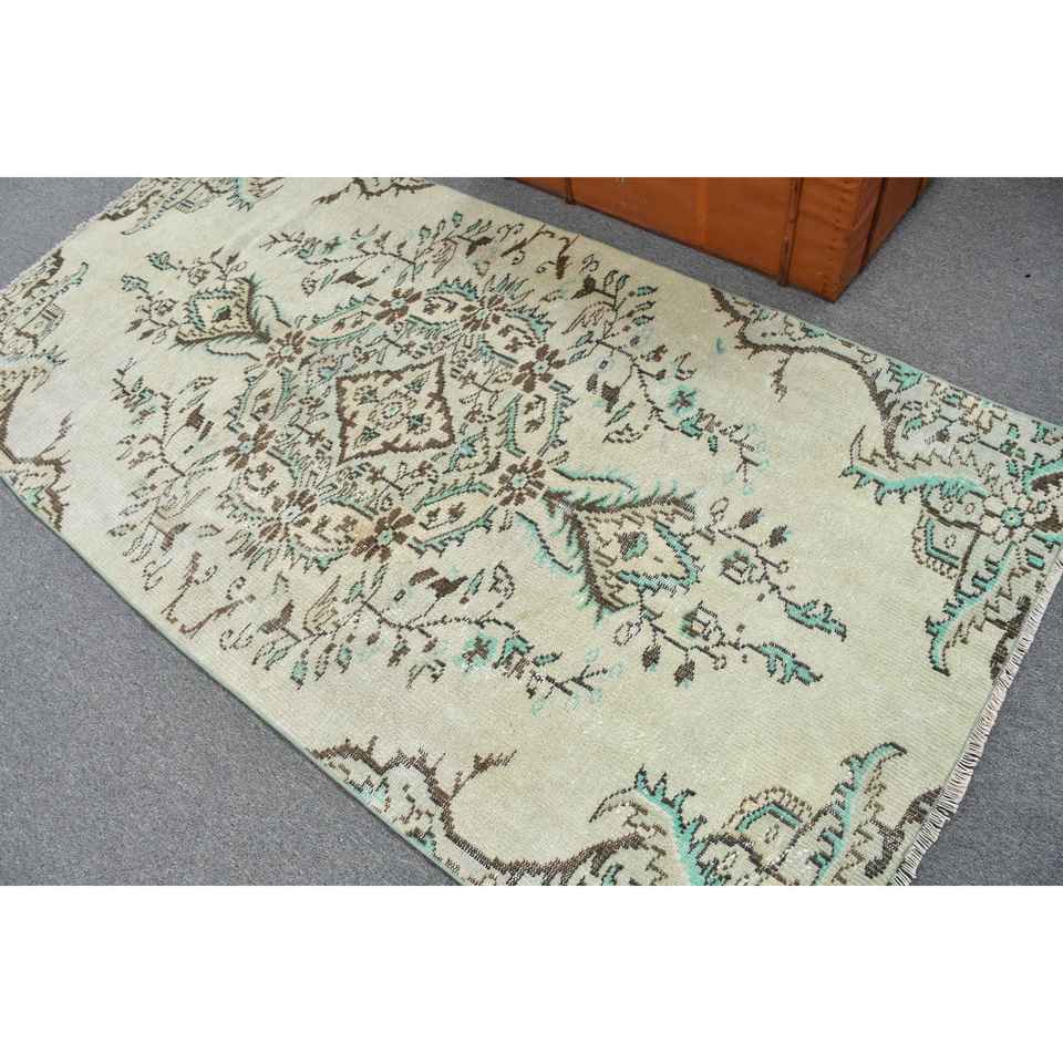 Alfombra de 3.8x7.8 pies, Alfombra Turca Vintage, Alfombra Marroquí Marrón y Azul