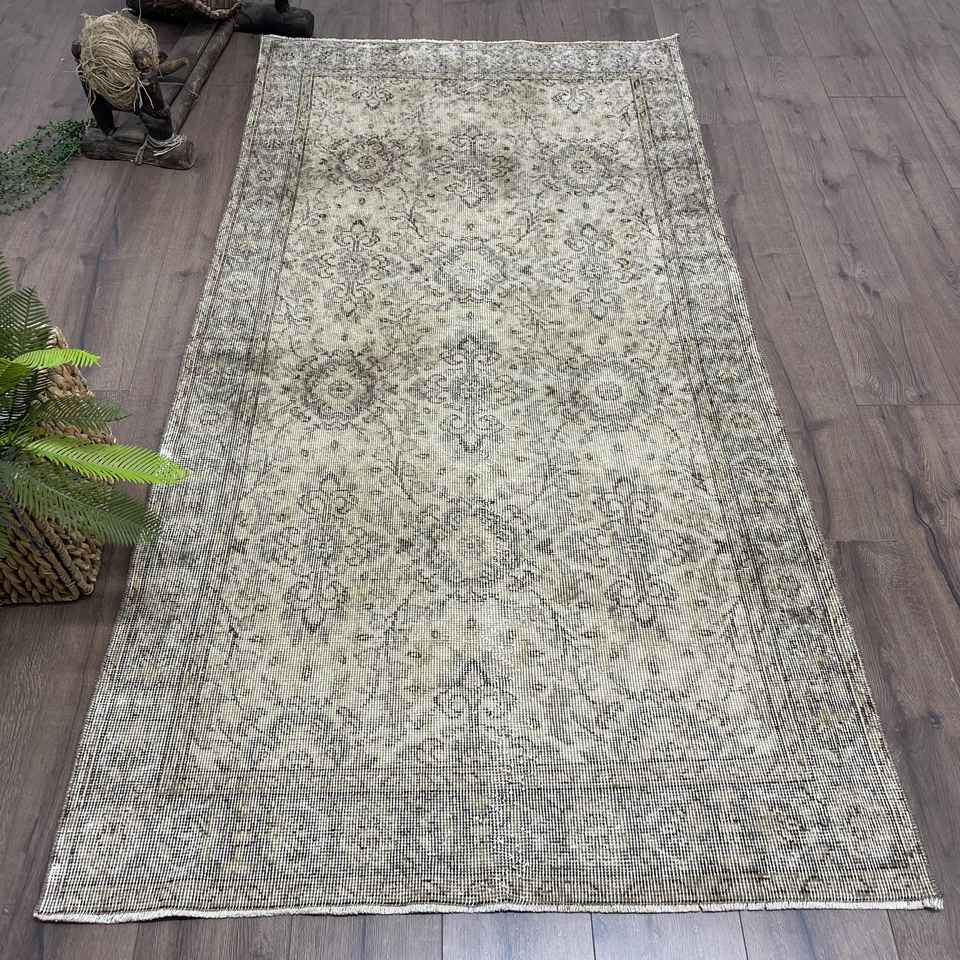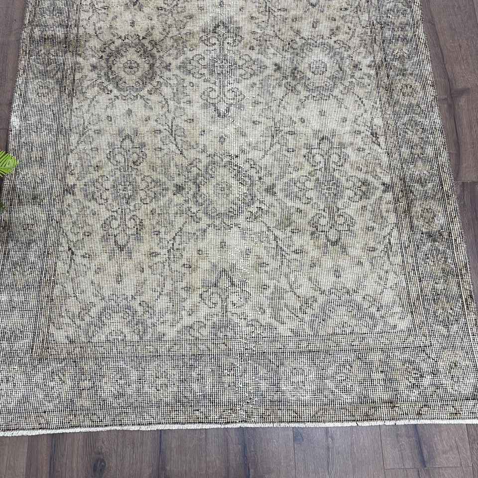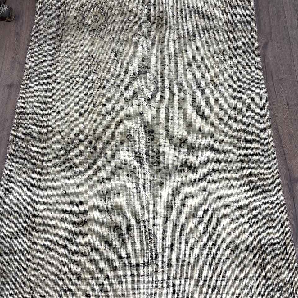 Alfombra Turca de 3.8x7 pies, Alfombra Vintage, Alfombra Marroquí Gris y Negra