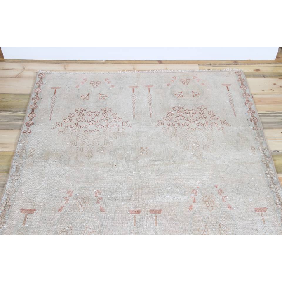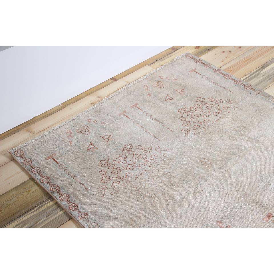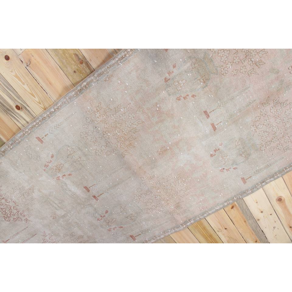 Alfombra Turca de 3.8x8.4 pies, Alfombra Vintage, Alfombra Floral Gris Rosa