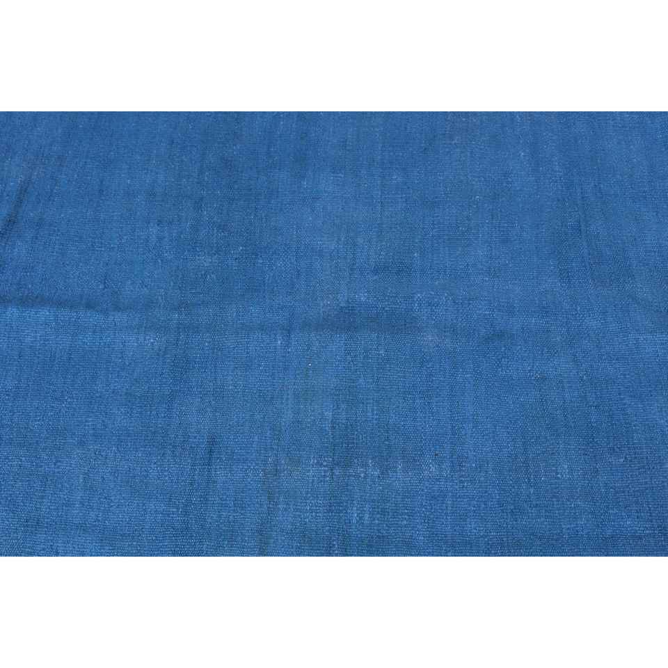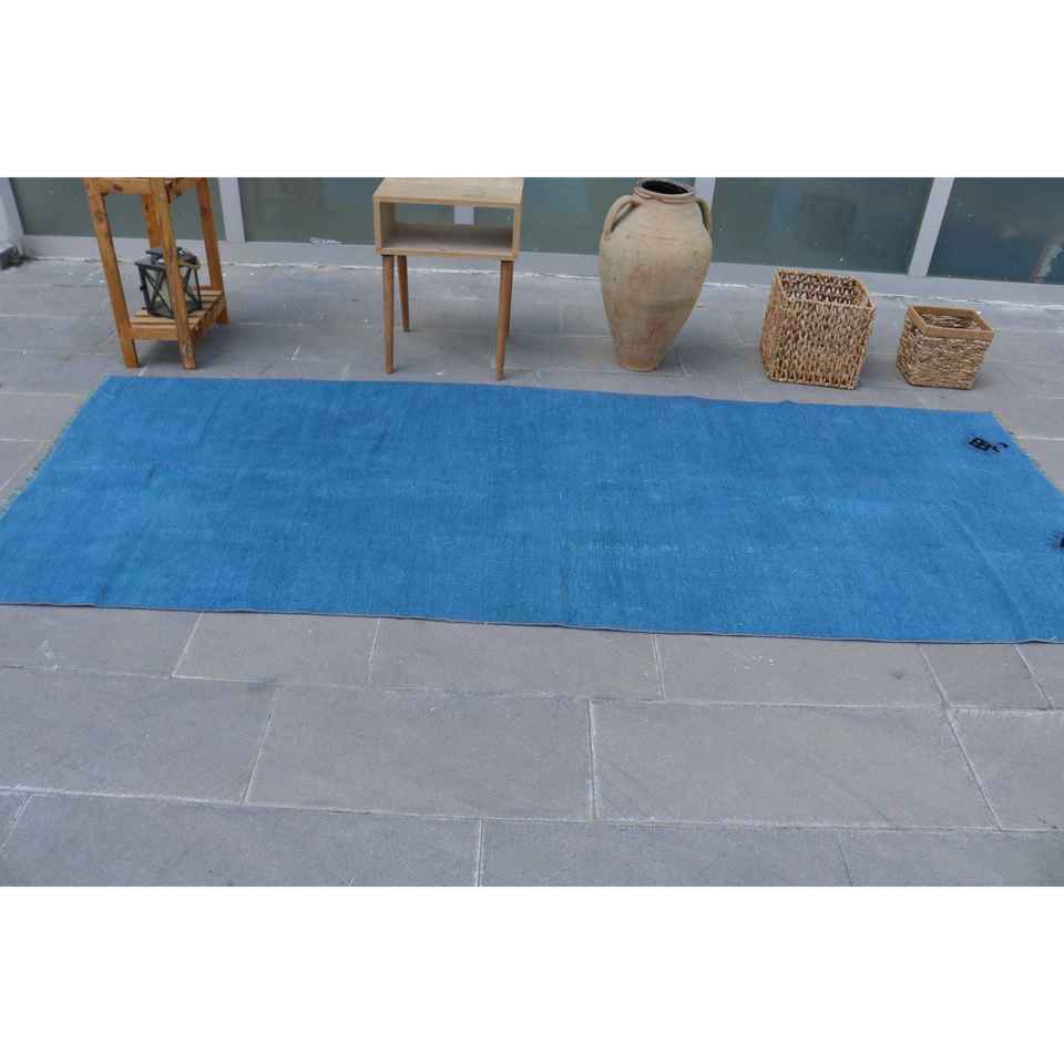 Alfombra Turca de 3.8x9.6 pies, Alfombra Vintage, Alfombra Ikat Azul y Blanca