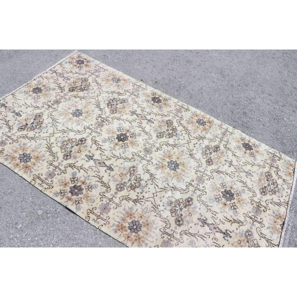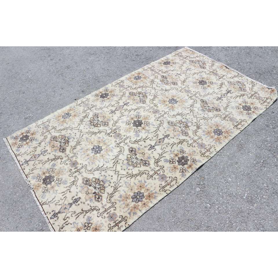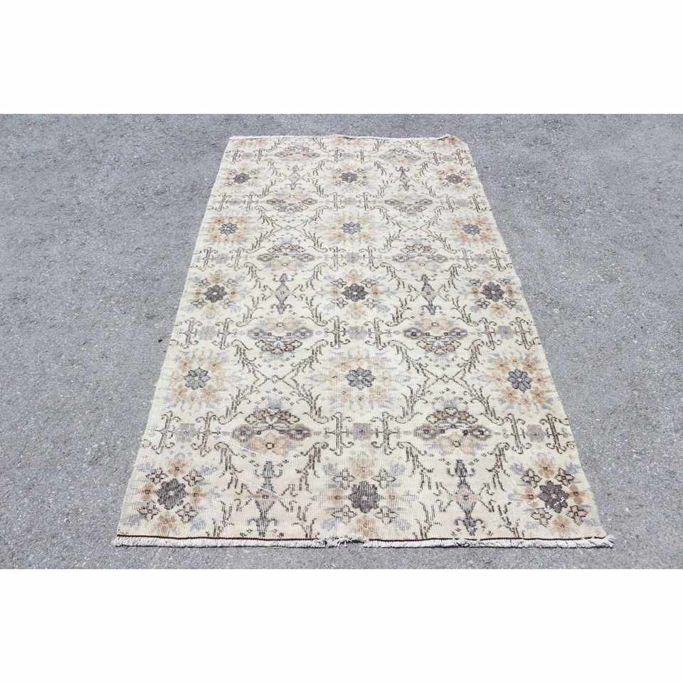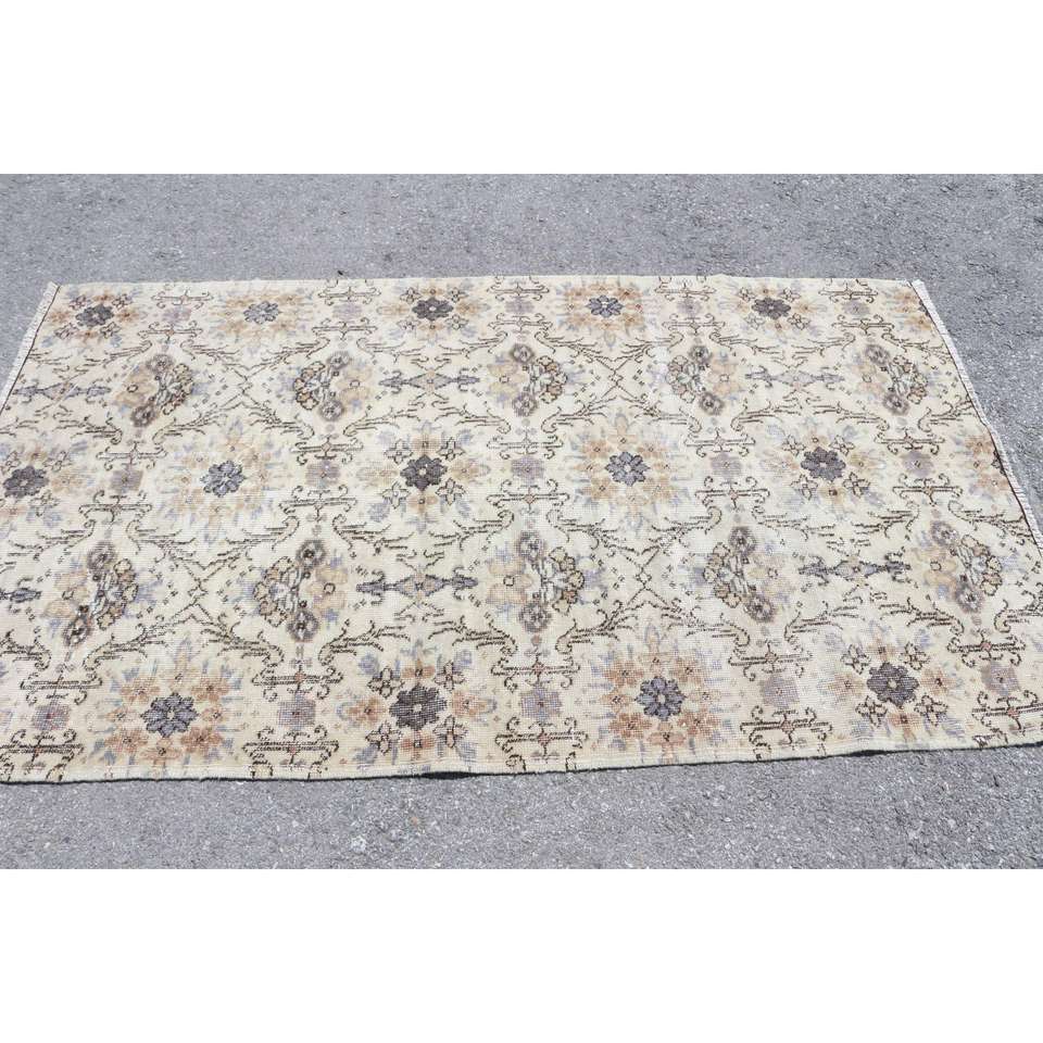 Alfombra Vintage de 3.9x6.7 pies, Alfombra Turca, Alfombra Oriental de Lana Gris