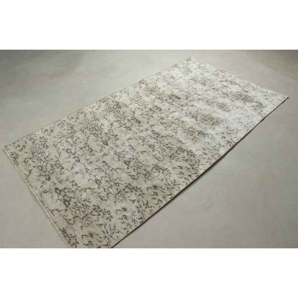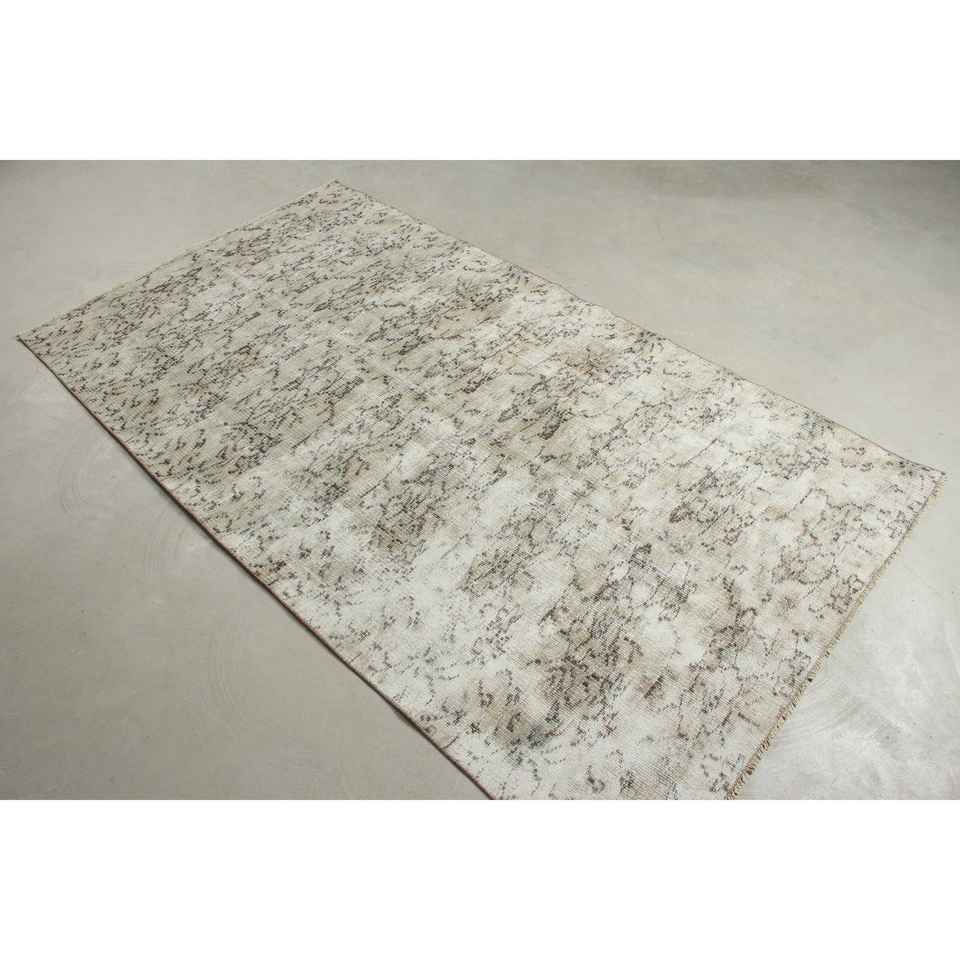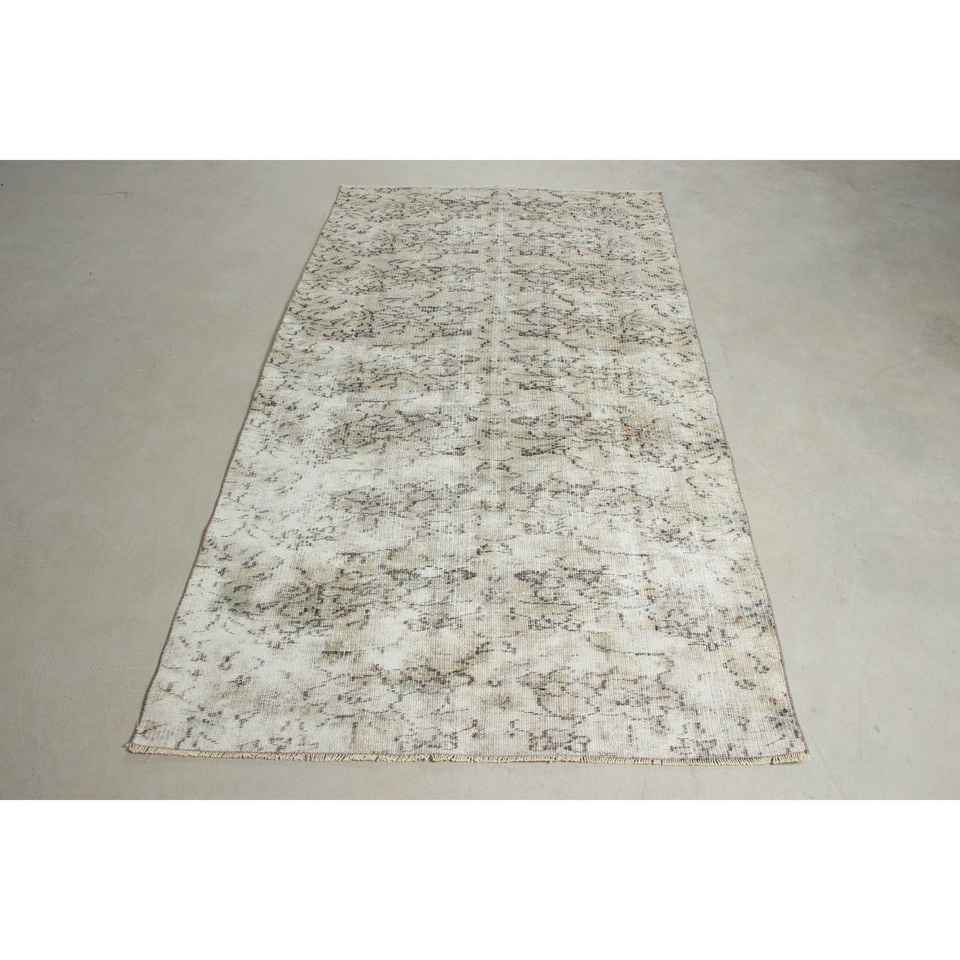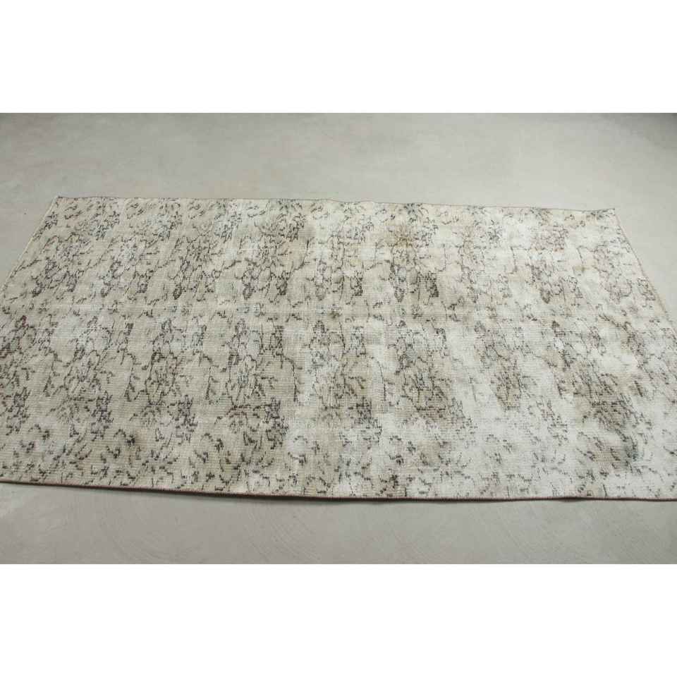 Alfombra Turca de 3,9x7,3 pies, Alfombra Vintage, Alfombra Blanca con Rayas
