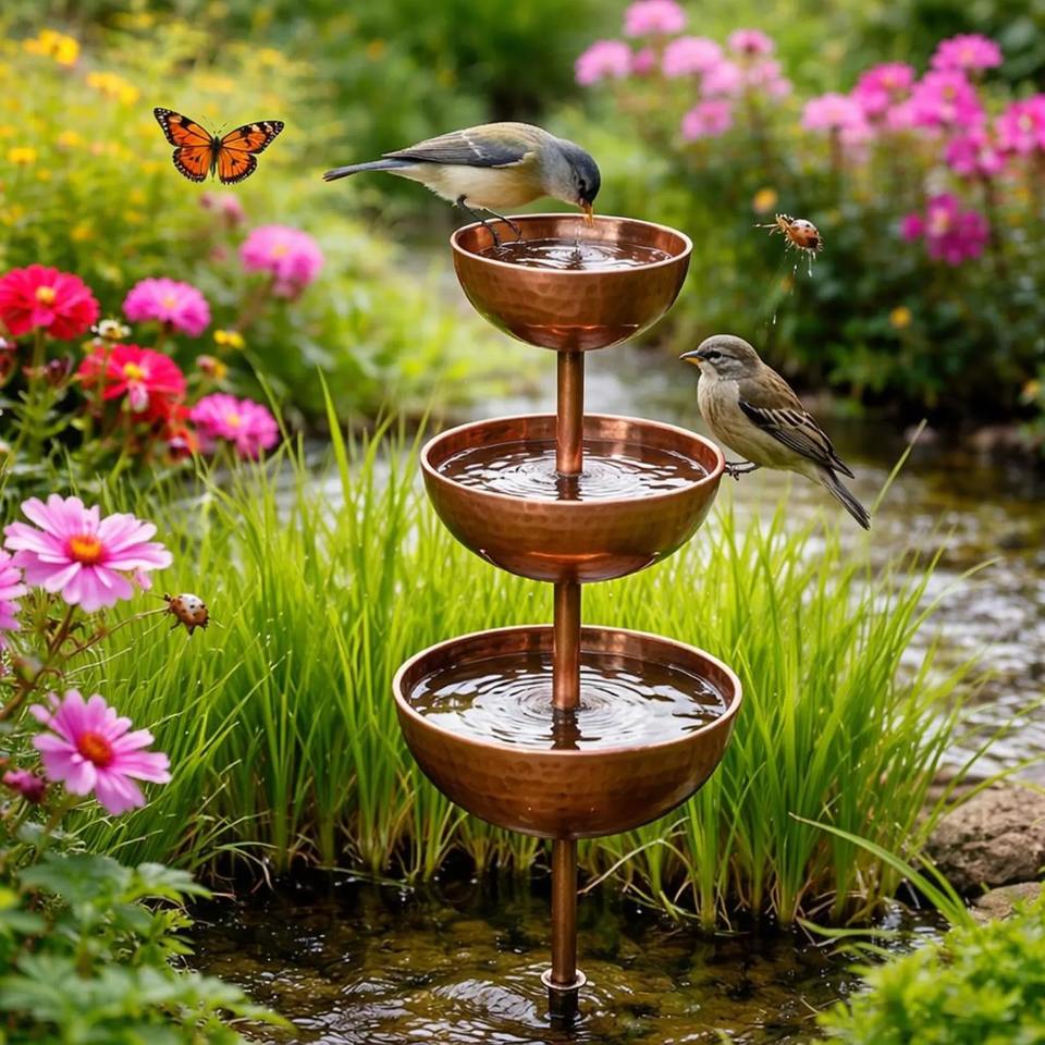 Cadena de lluvia con forma de 3 cuencos, perfecta para decoración exterior de jardines y como elemento decorativo para la recolección de agua de lluvia. Venta al por mayor desde India.