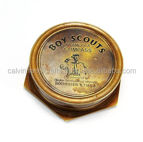 Brújula hexagonal Boy Scout de latón de 3 "con historia de la brújula de bolsillo Scout
