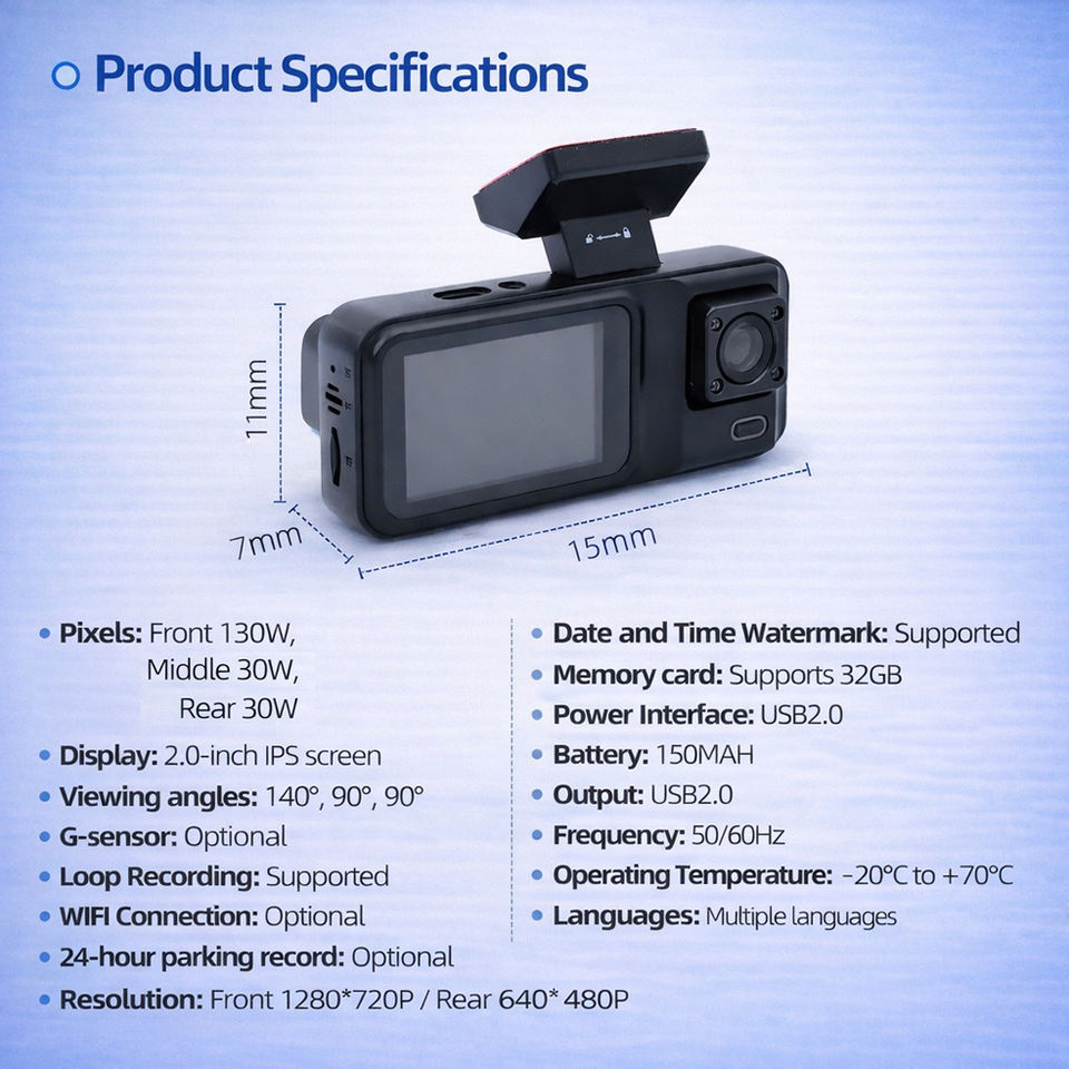 Tipo:Video Grabadora, DASH CAM, Lente dual, Los datos de evento Grabadora (EDR)