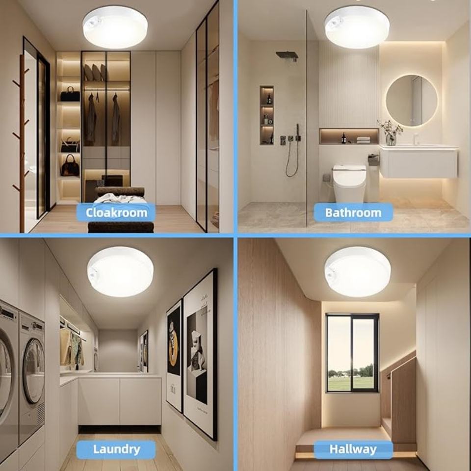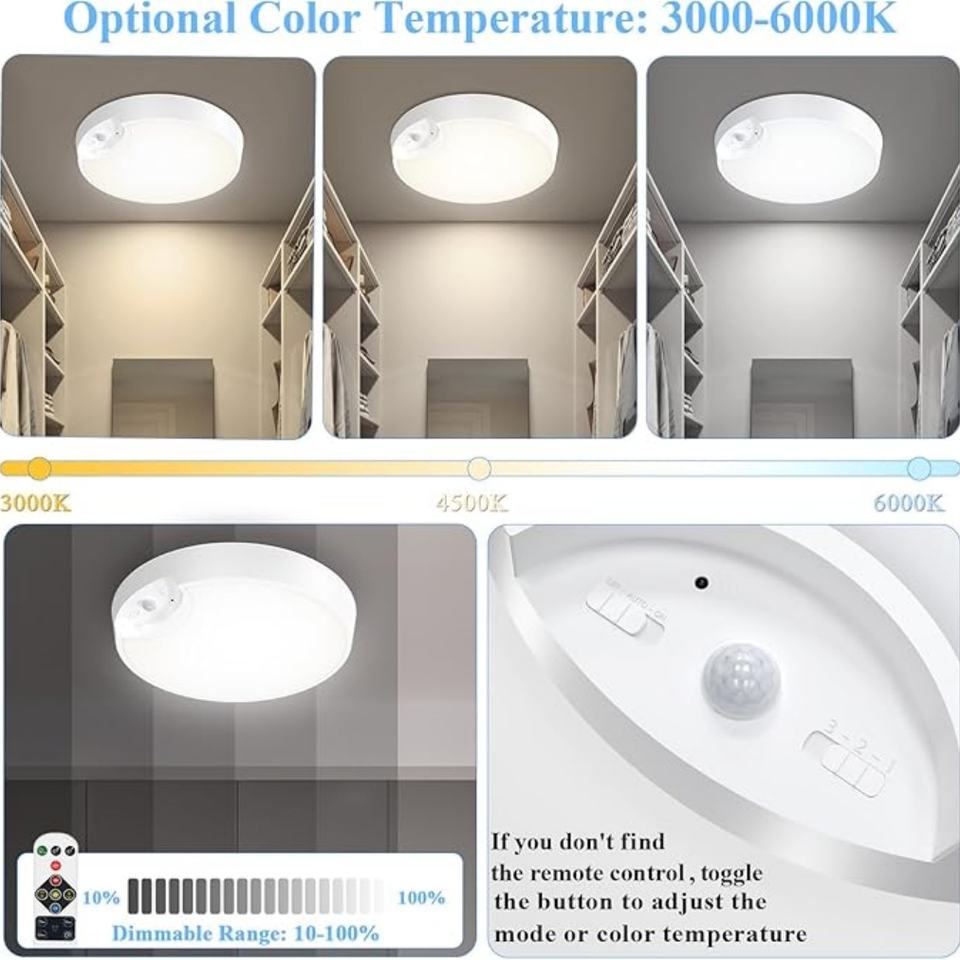 Luces de Techo Inalámbricas con Control Remoto a Batería de 3 Colores, 5400mAh de Larga Duración, Sensor de Movimiento, Temporizador Interior para Armarios y Escaleras