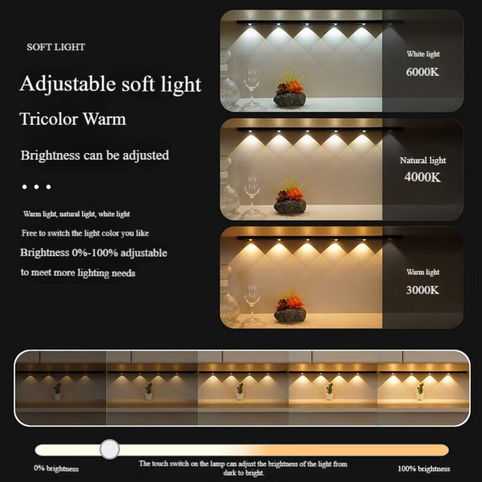 Luz Inalámbrica Recargable con Sensor de Movimiento para Armario, 3 Colores, Luz Debajo del Gabinete con Lámpara Luminosa para Armario