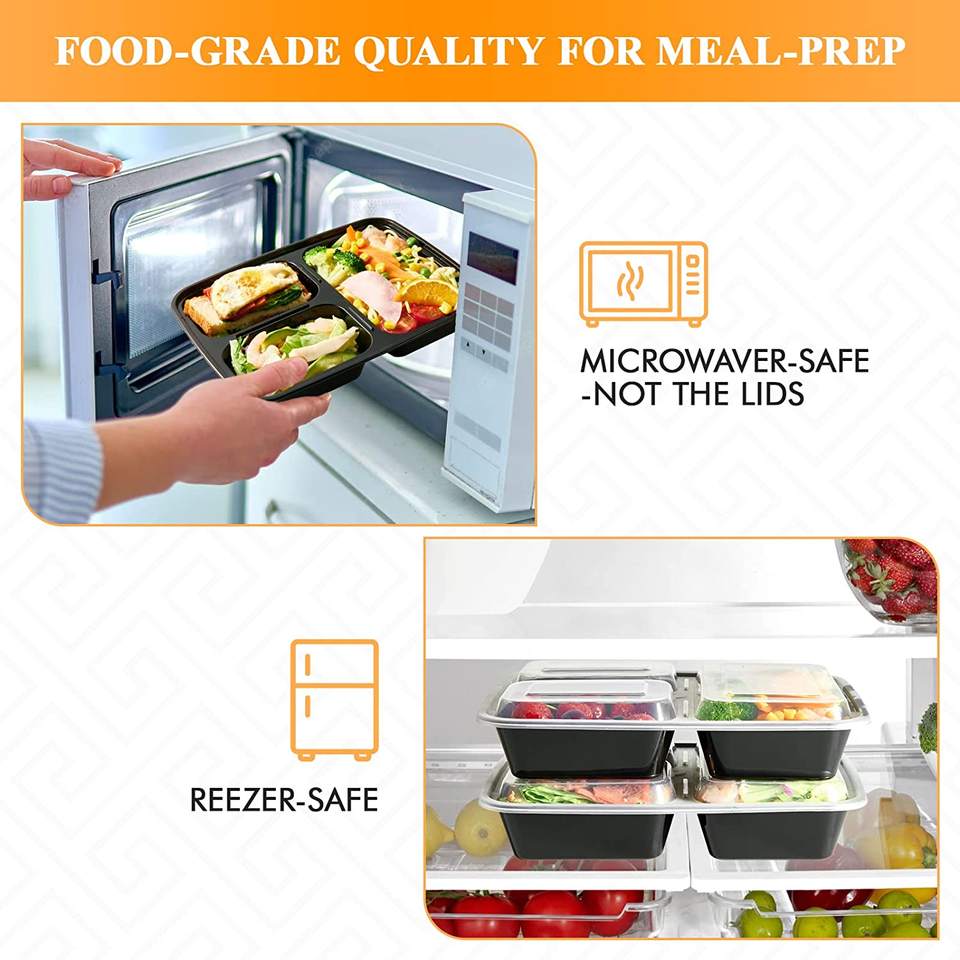 Contenedores de Almacenamiento de Alimentos de PP de 3 Compartimentos, Loncheras para Llevar, Aptos para Microondas, Contenedores Desechables de Plástico para Preparación de Comidas