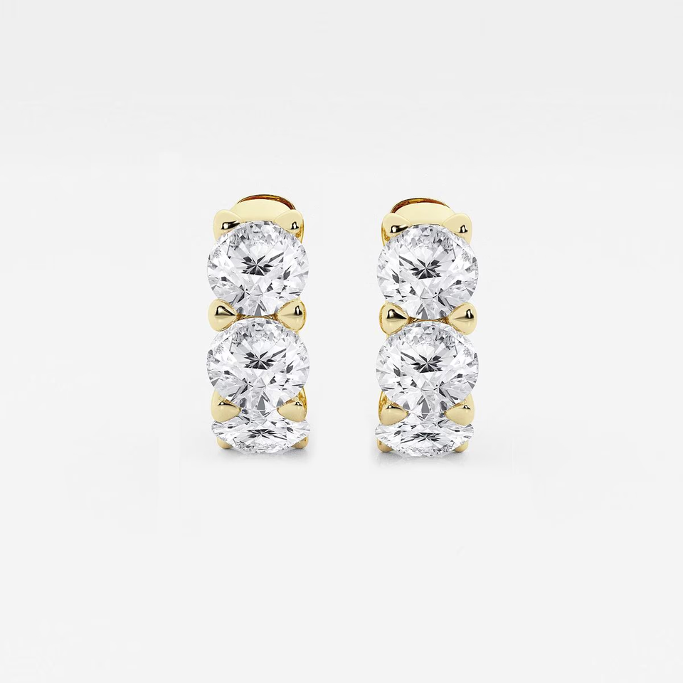 Pendientes de aro con diamantes cultivados en laboratorio, redondos, 3 Ctw, para mujer, joyería fina brillante, elegante, minimalista, regalo para el día a día