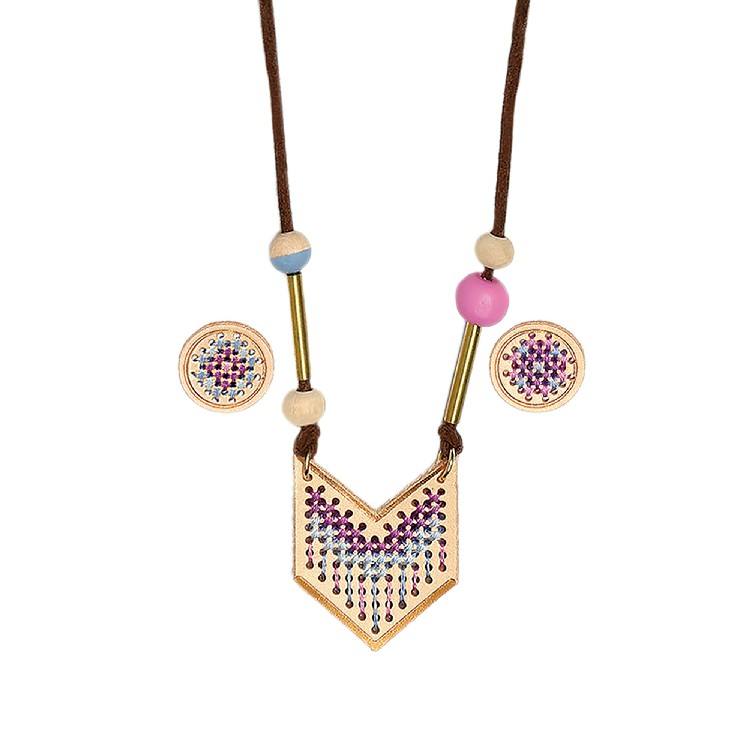 Juego de accesorios geométricos de punto de cruz de cuero, exquisito, personalizado, llavero, 3