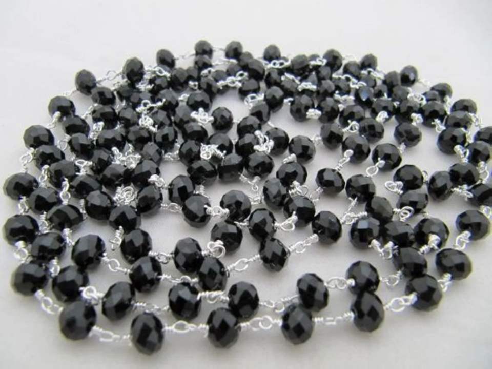 Cadena Aati de 3 pies con cuentas de ónix negro de 6mm Hydro Quartz Rondelle facetado negro espinela con cuentas Rosario Material de latón alambre envuelto