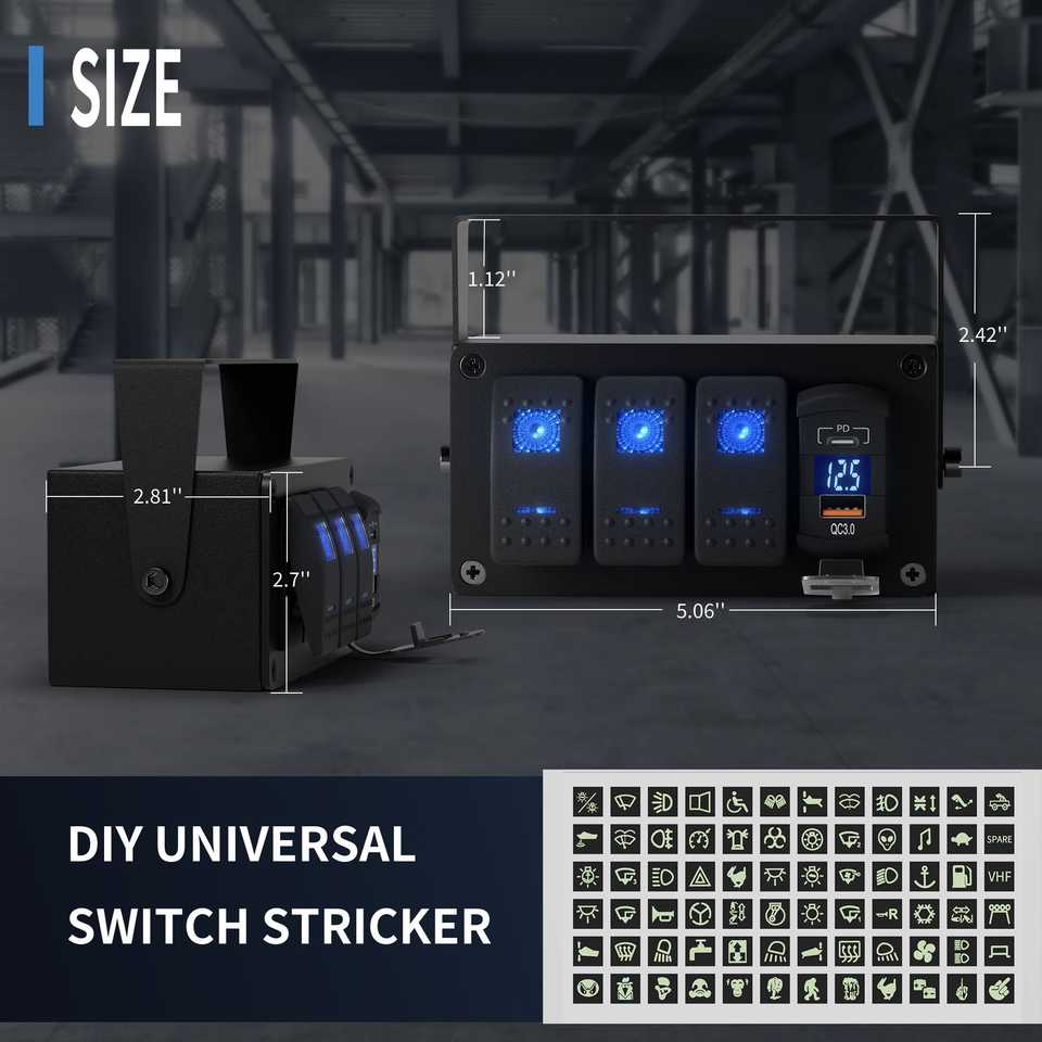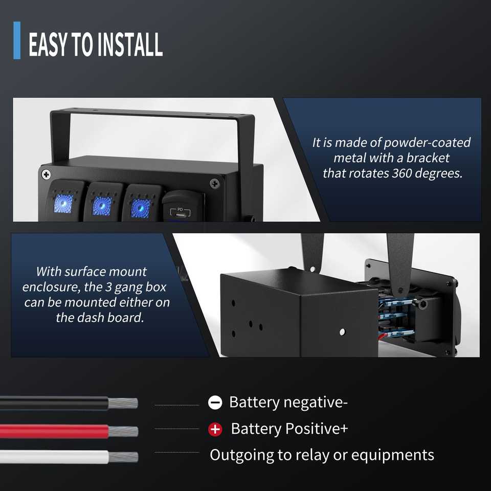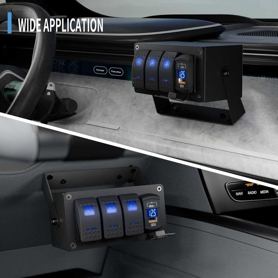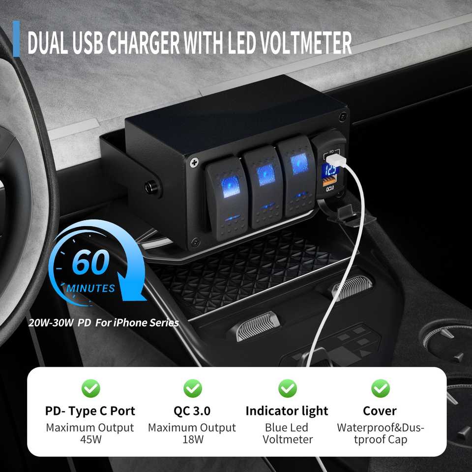 Caja de interruptores basculantes de 3 posiciones con cargador USB dual PD QC 3.0 y voltímetro para uso en automóvil
