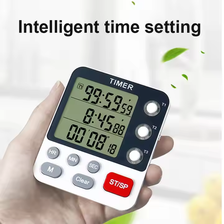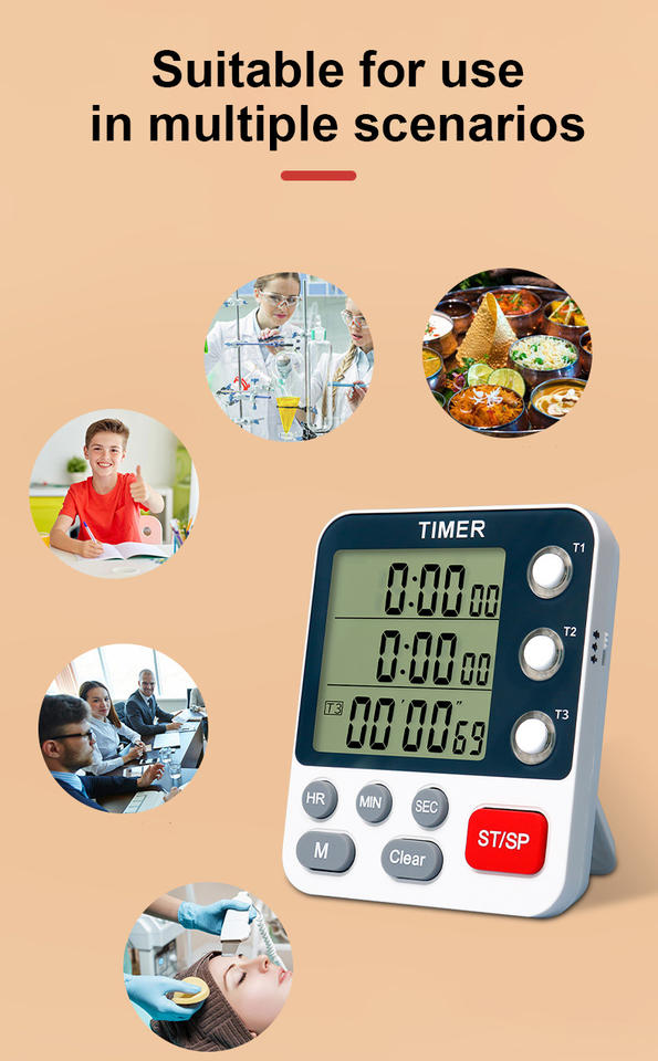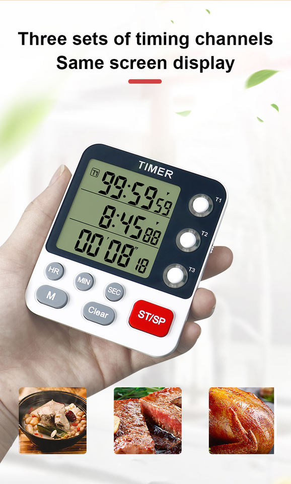 Temporizador de alarma de cocina Digital de 3 grupos para cocinar Temporizador industrial magnético de Google Temporizador de estudio de productividad para niños