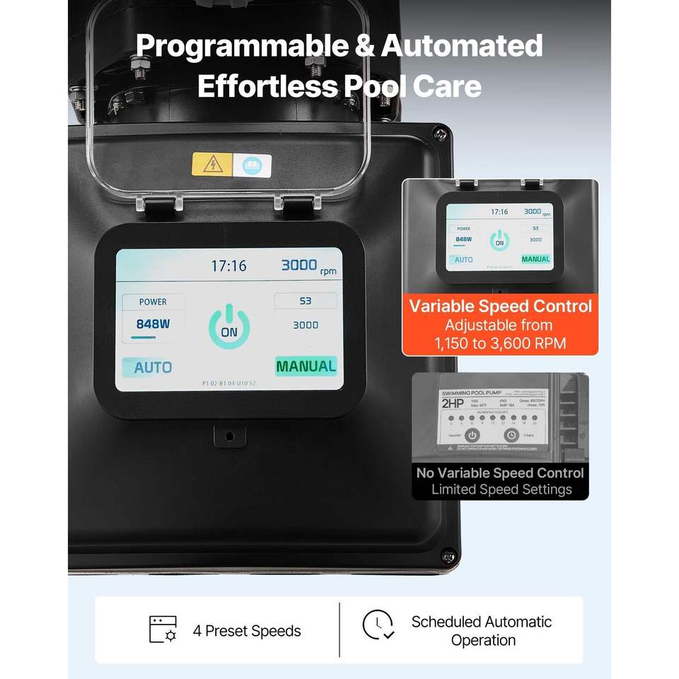 Bomba de Piscina de Velocidad Variable de 3 HP, CA 220-240V, 190 GPM, Potente, Autocebante, para Piscinas Elevadas/Enterradas, con Cesta Filtrante, Bomba de Nueva Tecnología