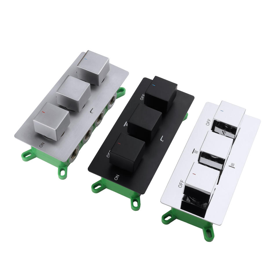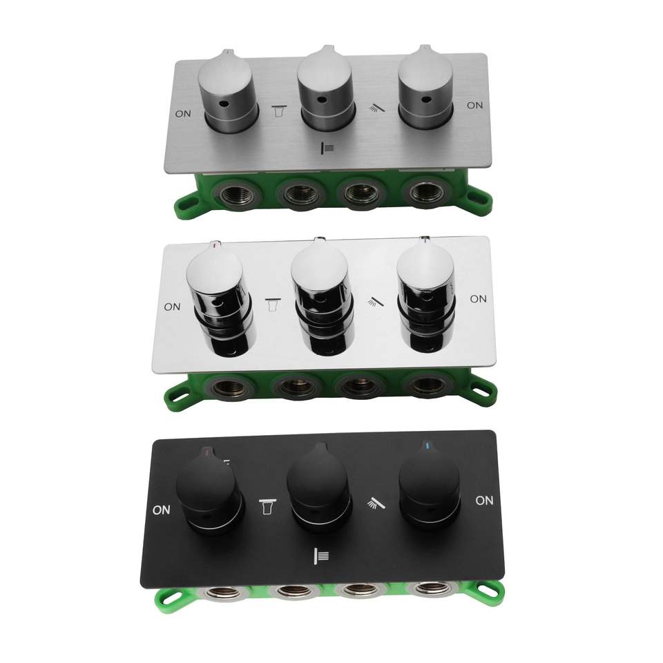 Válvula mezcladora de 3 manijas, cuerpo de 2.5 pulgadas, todo cobre, núcleo cerámico, grifo de agua fría y caliente, válvula de ducha V-010B