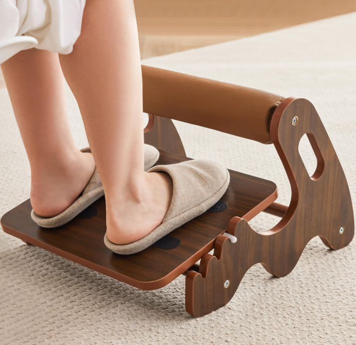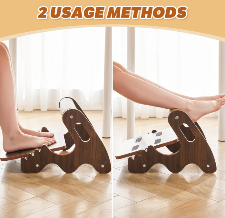 Taburete de pie mecedora ajustable de 3 posiciones de altura Reposapiés de madera con barra transversal suave para debajo del escritorio en el trabajo