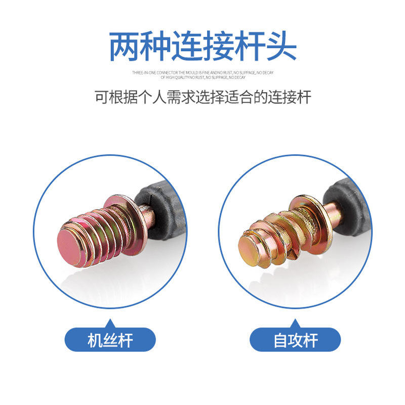 Conector 3 en 1 de aleación de zinc, varilla autorroscante para gabinetes, paneles de armarios, muebles, fácil instalación, estilo moderno y sencillo