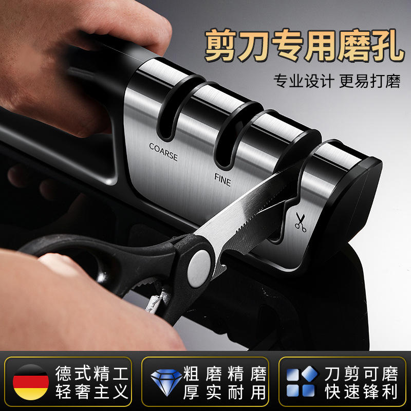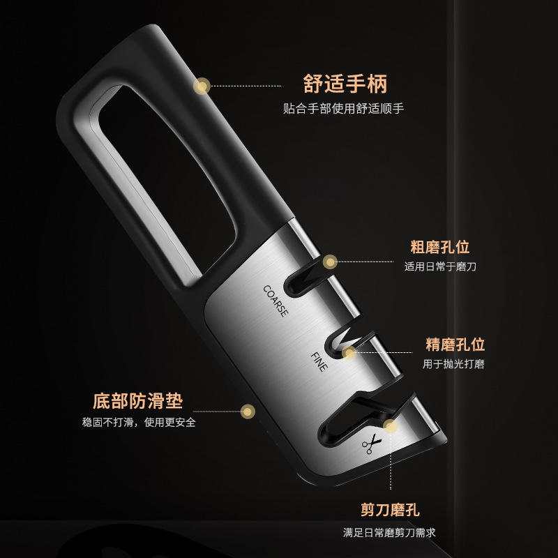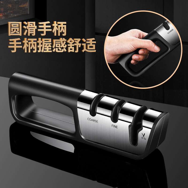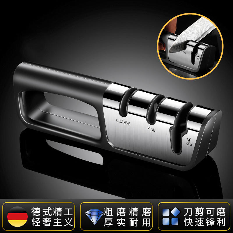 Afilador de cuchillos 3 en 1 de acero inoxidable, manual, con grano grueso y fino, para afilar cuchillos y tijeras.