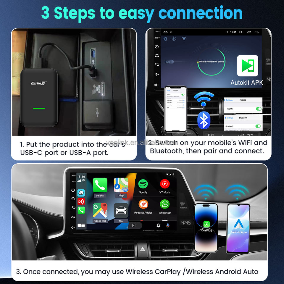 Unidad principal de coche del mercado de accesorios 3 en 1 A Adaptador automático inalámbrico Android Ai Box Usb Dongl carlinkit Carplay Mirrorlink para YouTube apple