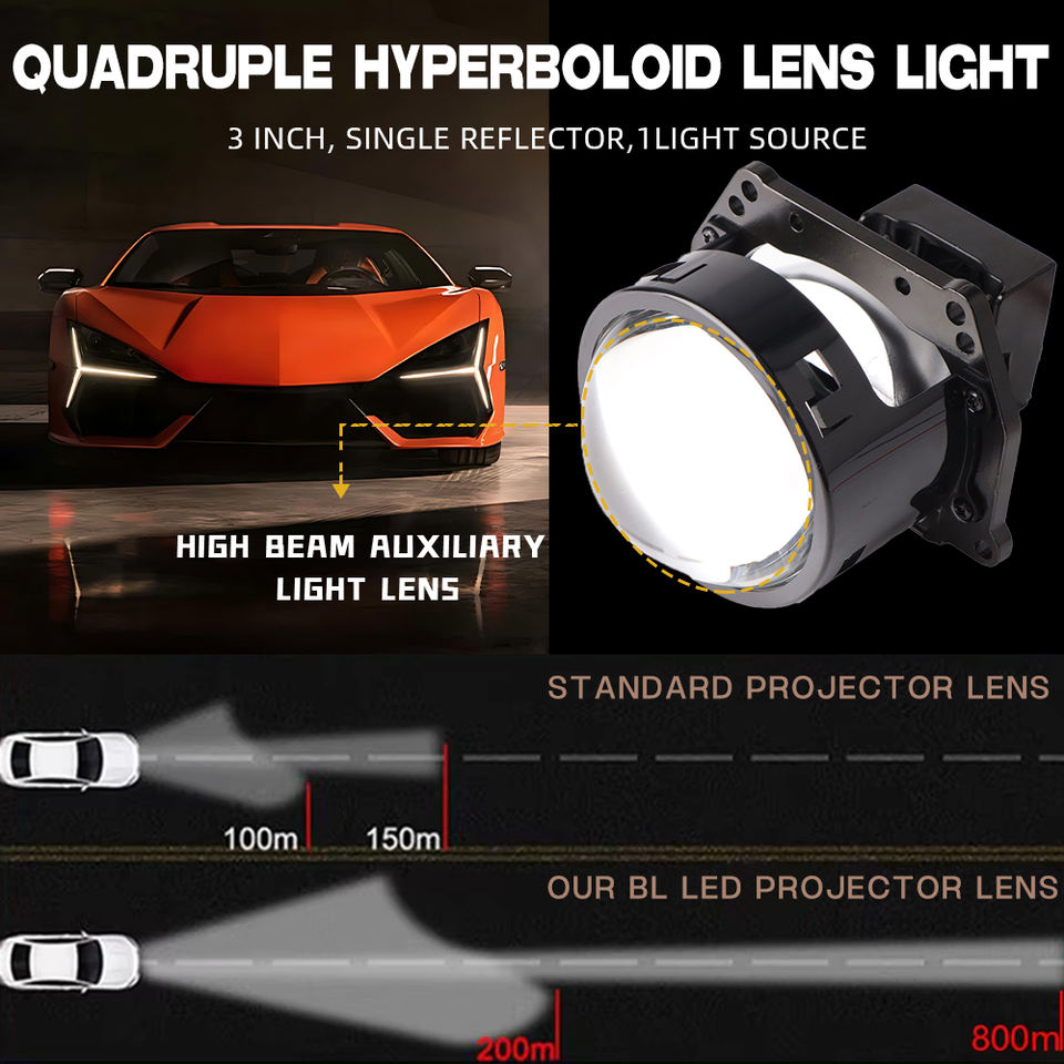 Lentes de Proyector Bi-LED de 3 Pulgadas, 6500K, 100W, Doble Láser, Sin Pérdidas, Retrofit 3.0, Faros Delanteros Bi-LED para Automóvil