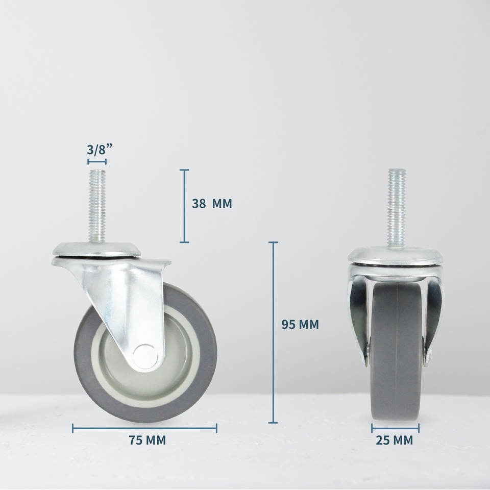 3 Inch 3/8" Stem Thermoplastic Rubber Wheel Casters For FurnitureProduct name