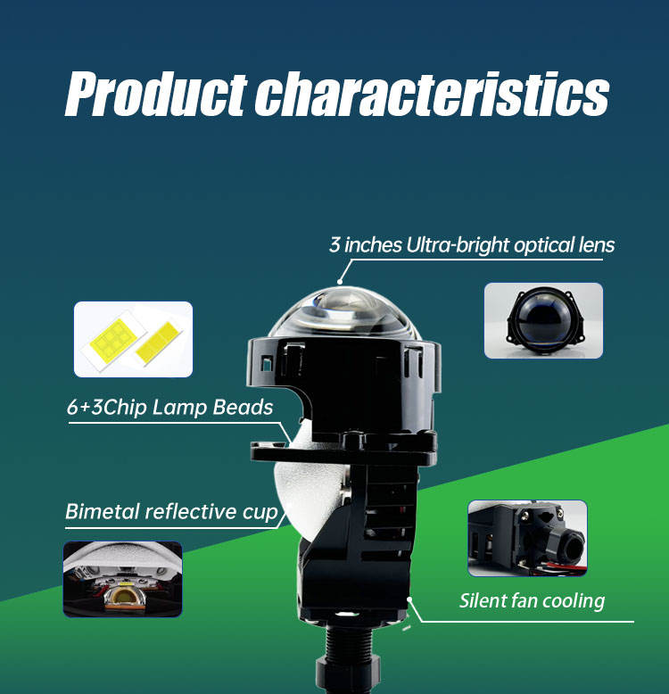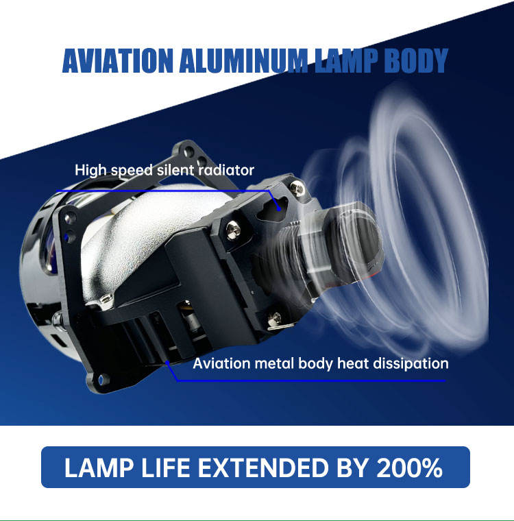 Proyector de lente Bi LED de 3 pulgadas, accesorios automotrices de reacondicionamiento de coche azul con temperatura de color de 6000K