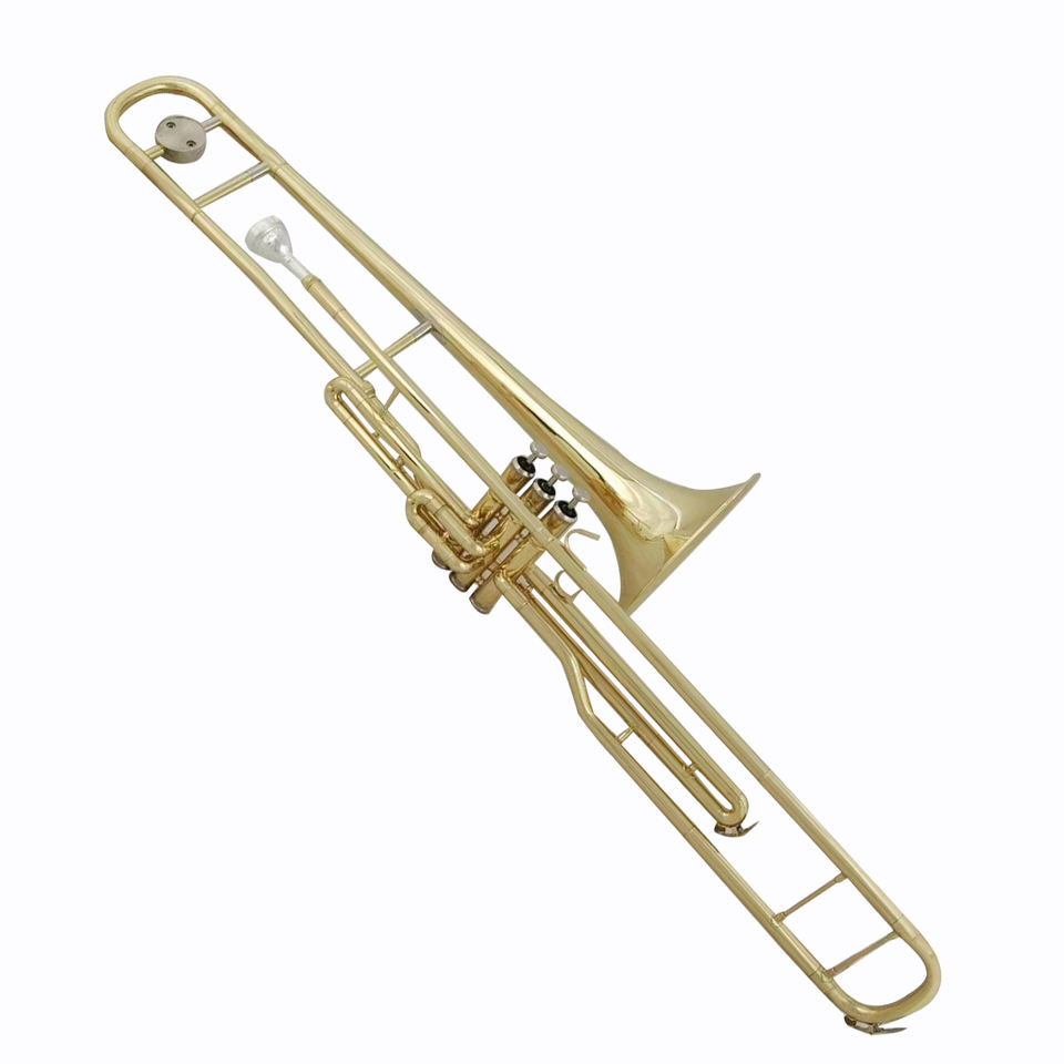 Trombón de pistones de 3 válvulas con laca dorada — fabricación OEM, trombón de pistón desde China